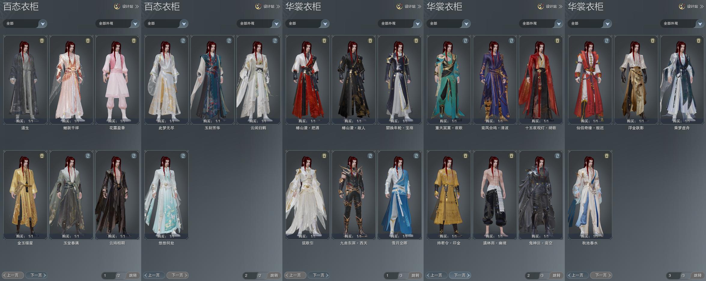 单盒成衣:[一代七夕衣, 小金龙衣, 箜篌盒衣, 绣球衣, 红椿山衣]