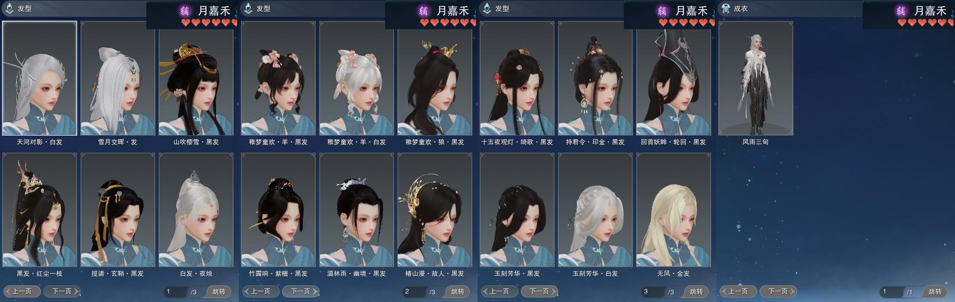 【发型】金发2个[猴金, 无风金发], 红发2个[猴红, 猪红], 黑发12个, 白发6个, 盒子发型[雪月白发, 山吹樱雪黑发, 十二黑, 黑懒猪黑发, 羊盒黑发, 狼盒黑发, 羊盒白发, 竹露响紫檀黑发, 黑傣族黑发, 黑椿山黑发, 红黑妖眸盒黑发, 金持君盒黑发, 黄观灯盒黑发], 总页数1