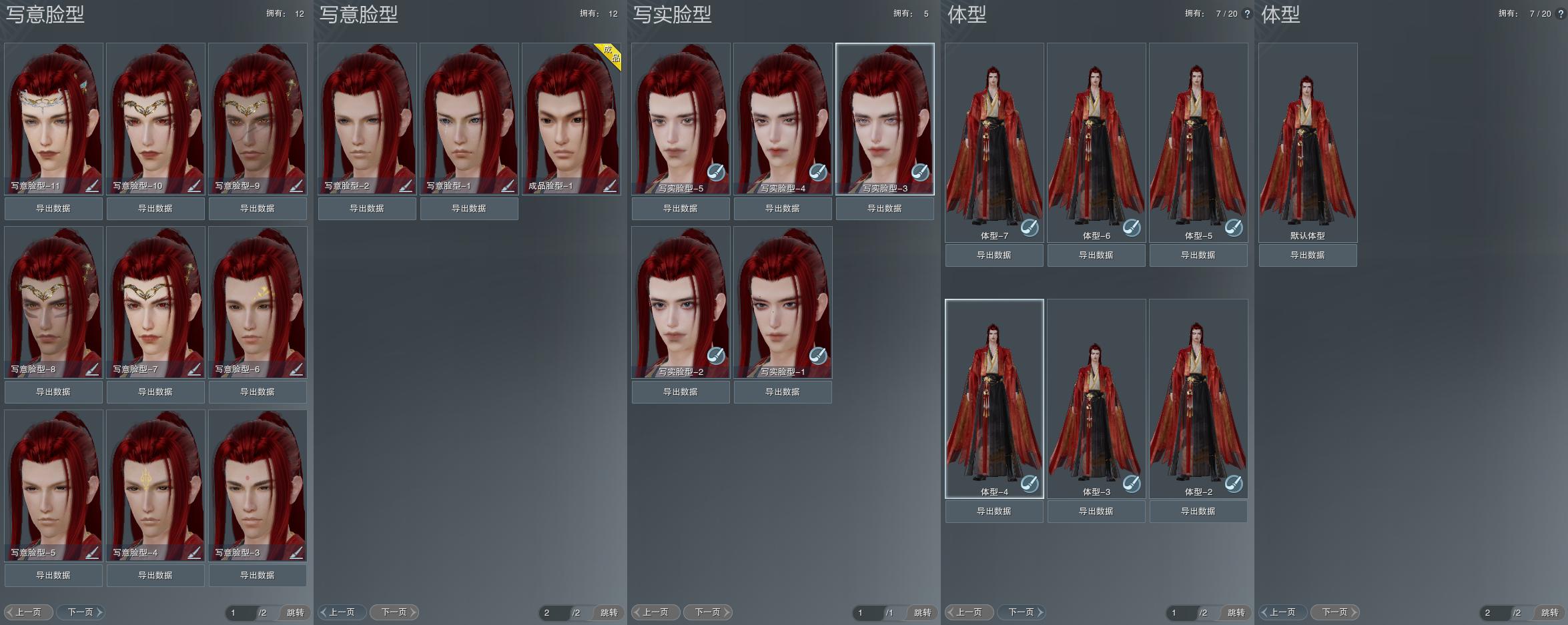 【捏脸】写意脸型12个,写实脸型5个,体型7个