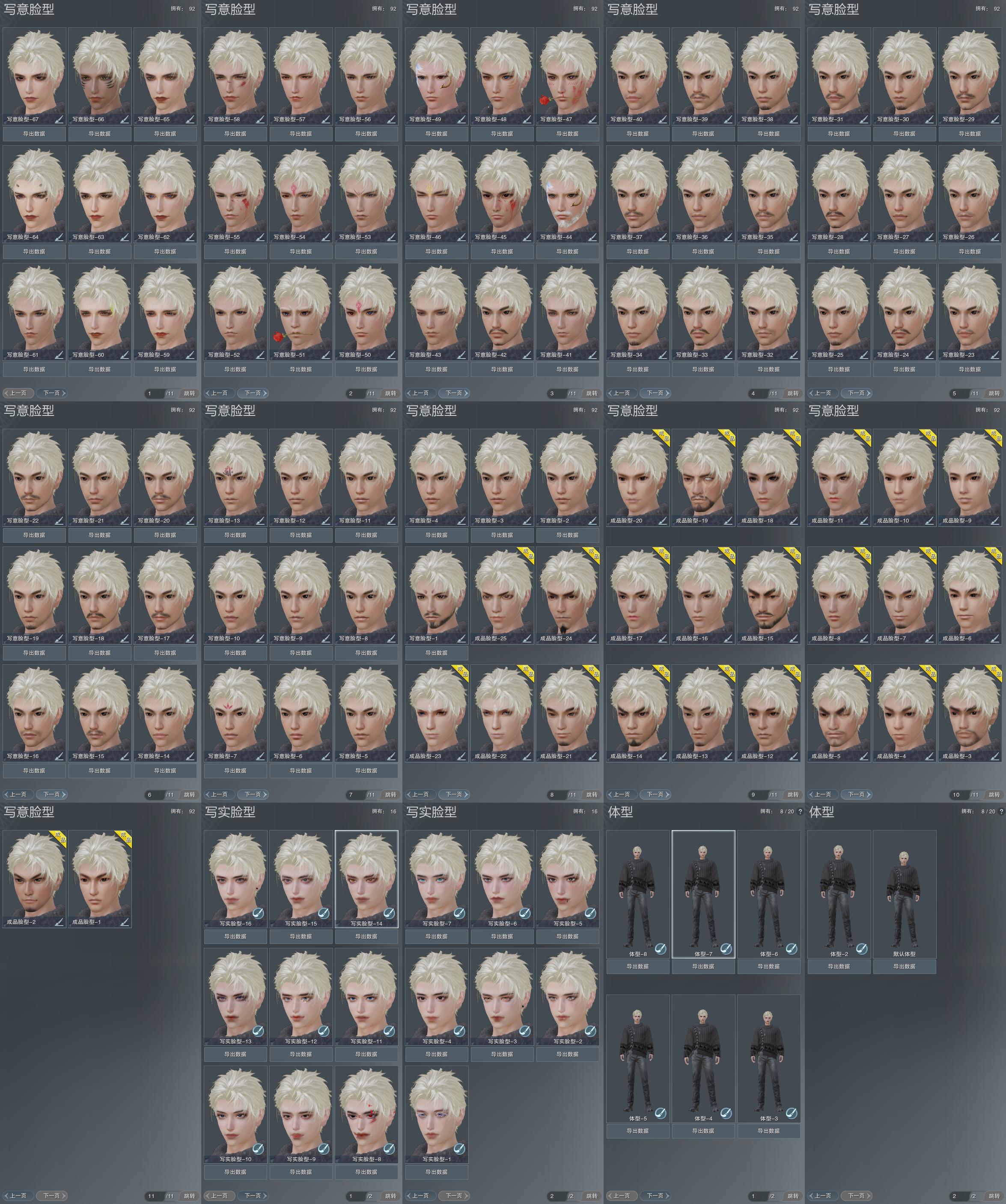 【捏脸】写意脸型92个,写实脸型16个,体型8个