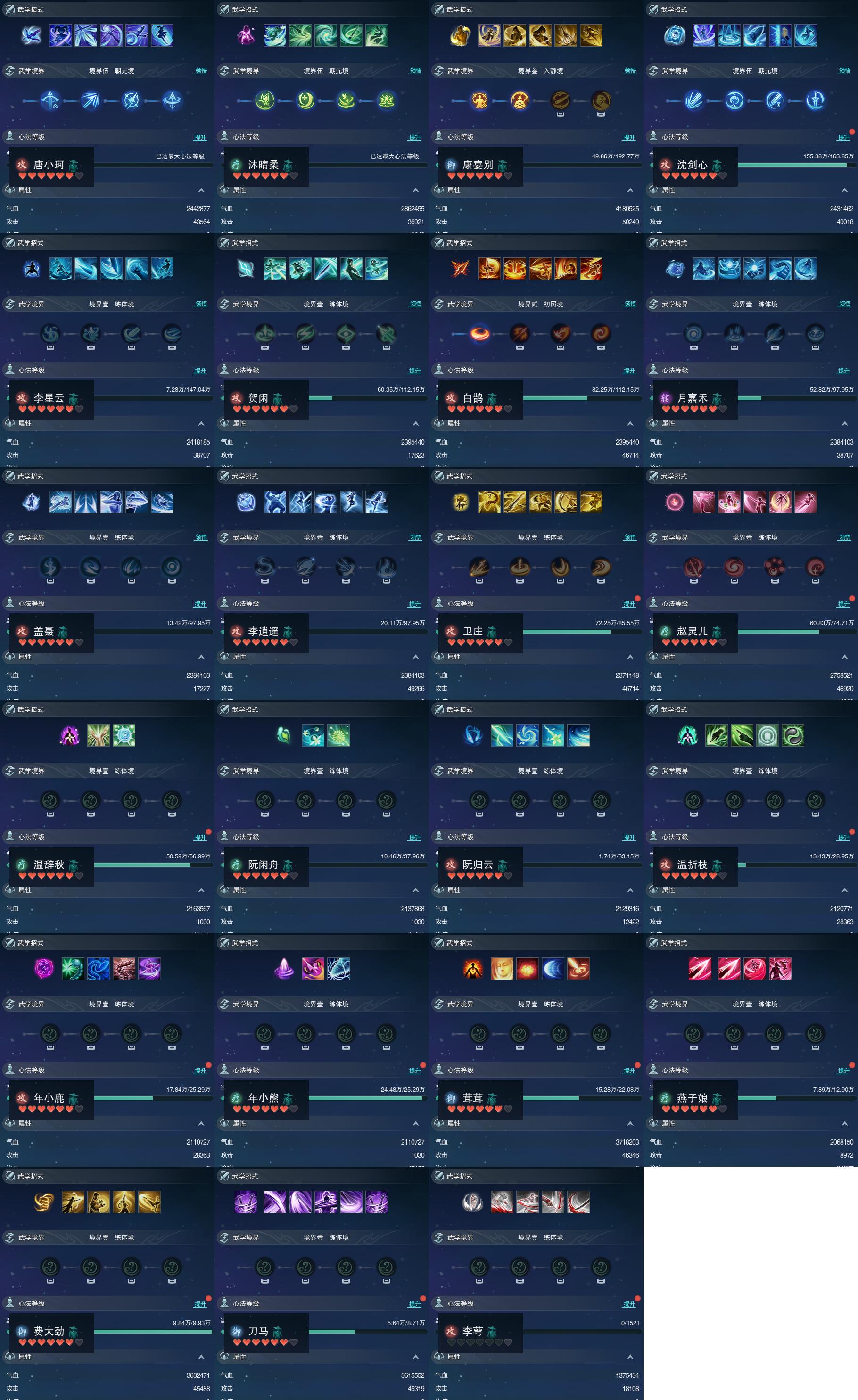 【同伴】唐小珂90级境界伍,沐晴柔90级境界伍,康宴别89级境界叁,沈剑心89级境界伍,李星云87级境界壹,贺闲志85级境界壹,白鹊志85级境界贰,月嘉禾84级境界壹,盖聂志84级境界壹,李逍遥84级境界壹,卫庄志83级境界壹,赵灵儿82级境界壹,温辞秋80级境界壹,阮闲舟77级境界壹,阮归云76级境界壹,温折枝75级境界壹,年小鹿74级境界壹,年小熊74级境界壹,茸茸志73级境界壹,燕子娘69级境界壹,费大劲67级境界壹,刀马志66级境界壹,李萼志1级境界壹