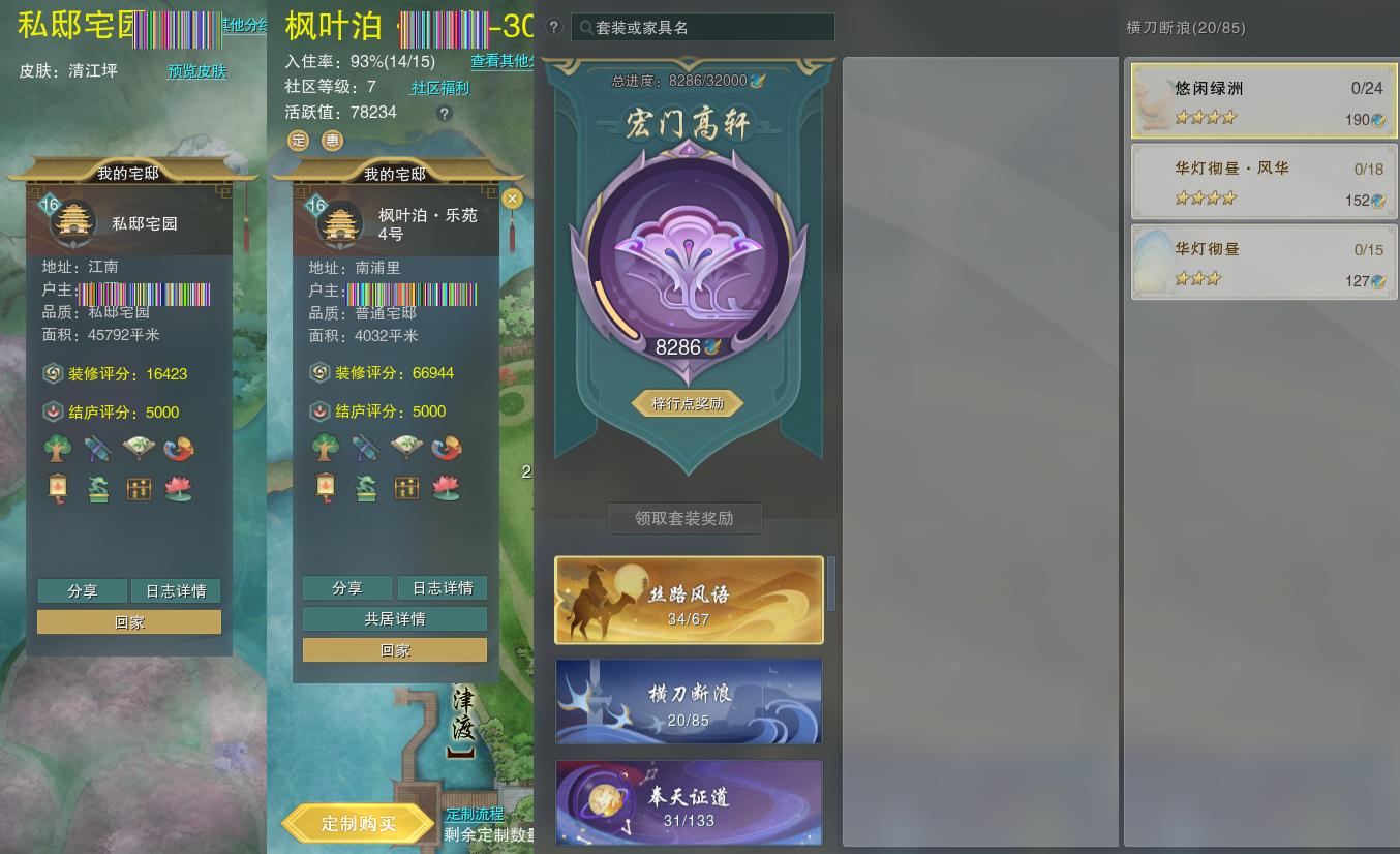 【家园】房屋等级16,社区等级了,私邸宅园,梓行点8286