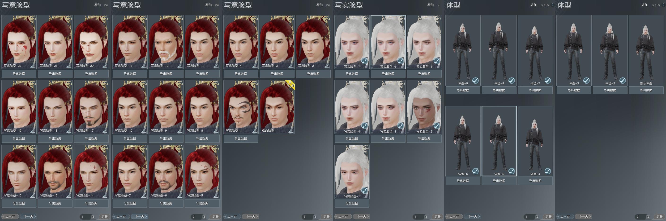 【捏脸】写意脸型23个,写实脸型7个,体型9个