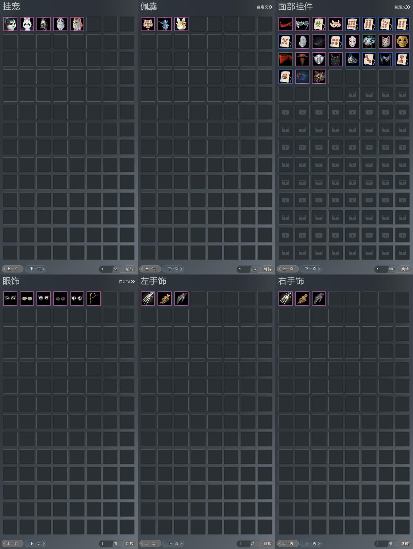 【肩饰】9左,11右,[赤羽逍遥·左, 玄龙夜舞·左, 双鱼曳波·无量·左, 绝代仙·墨楼·左, 云旌望捷·左][玄龙夜舞·右, 绝代仙·墨楼·右, 云旌望捷·右]