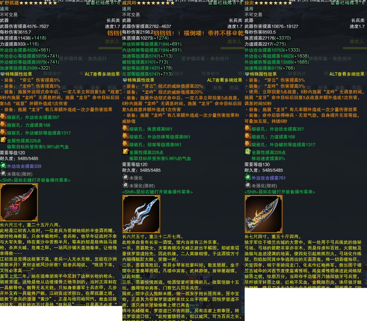 【橙武】(仅本门派)[130CW掠炎, 120小铁*12, 130小铁*10, 110小铁*33, 100小铁*200, 95小铁*201, 90小铁*202, 80小铁*201, 70小铁*201, 120CW旷野孤疆, 120CW威风吟, 90CW溯流, 80CW摧城, 门派特效炎枪重黎]