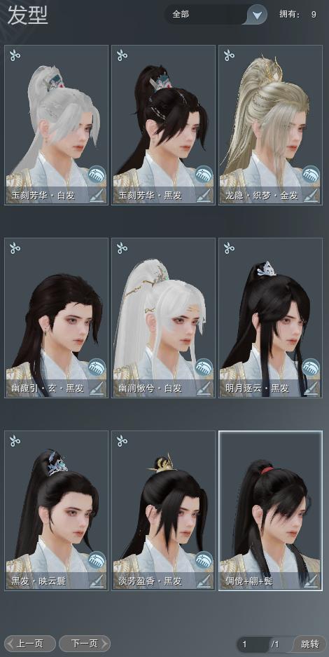【发型】金发4个[狐金, 国金, 三代金, 白龙隐金发], 红发1个[猴红], 黑发7个, 白发7个, 盒子发型[六代中秋黑发, 六代中秋白发, 蝴蝶黑发, 红梅盒黑发, 蝴蝶白发, 红梅盒白发, 七七黑发, 七七白发, 幽涧愀兮白发, 黑幽馥黑发], 总页数1