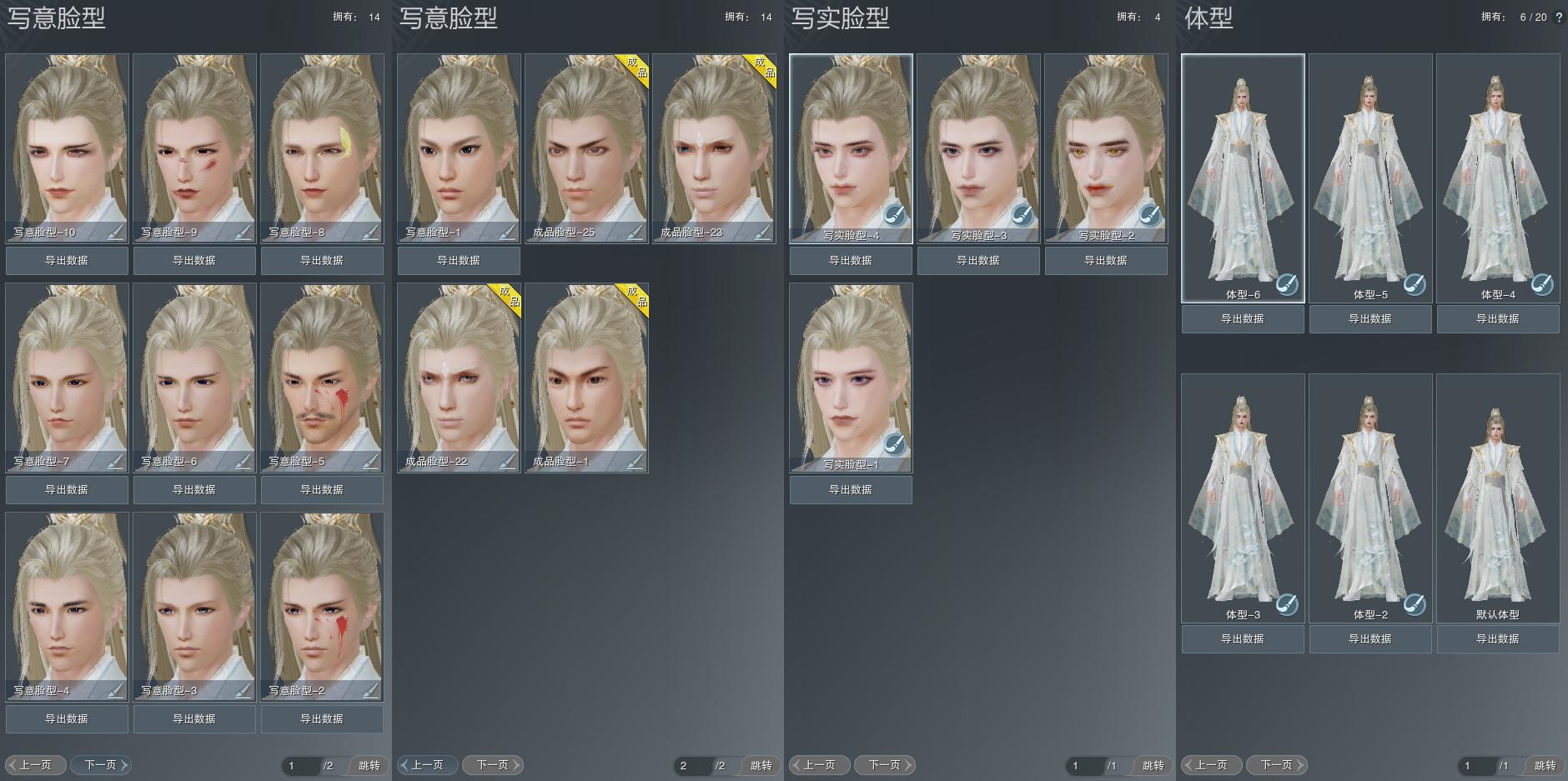 【捏脸】写意脸型14个,写实脸型4个,体型6个