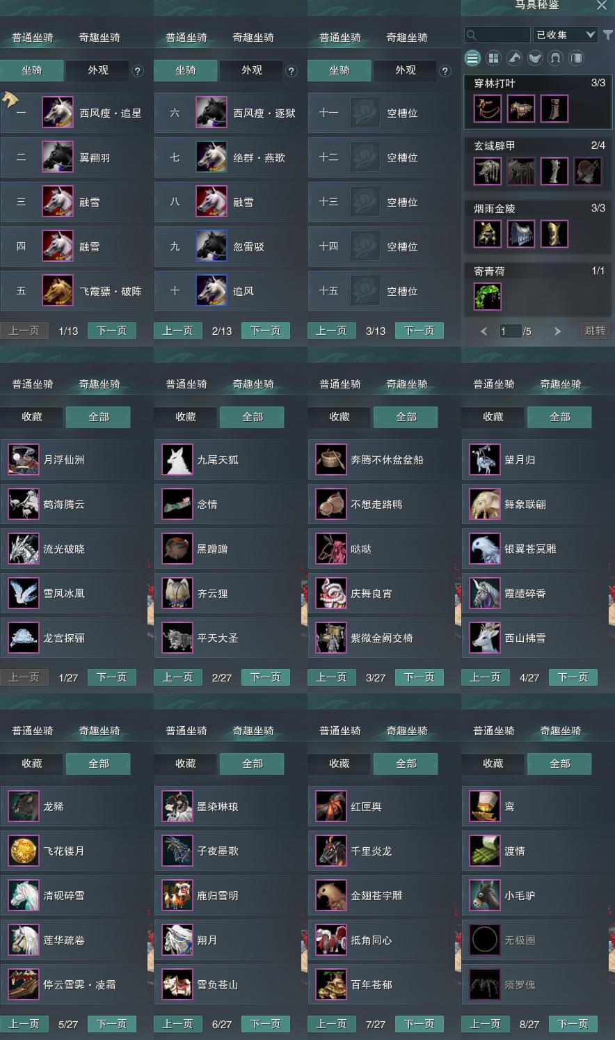 【坐骑】10个[西风瘦逐狱, 西风瘦追星, 飞霞骠破阵]