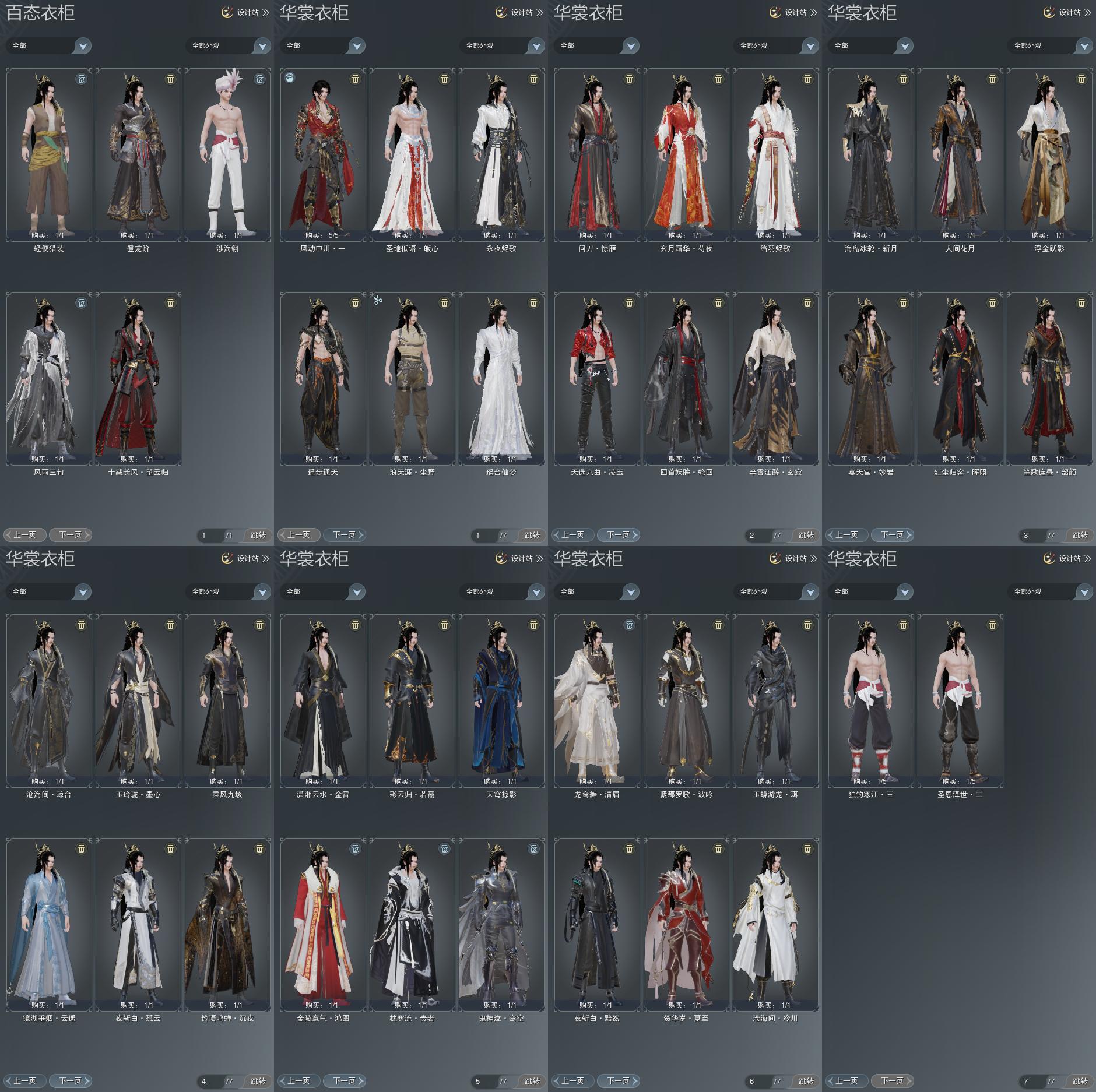 单盒成衣:[二代乘风衣, 黑玲珑衣, 唐风韶颜衣, 小金龙衣, 黑海岛衣, 西游盒衣, 傀儡盒衣, 红问刀, 白波斯衣]