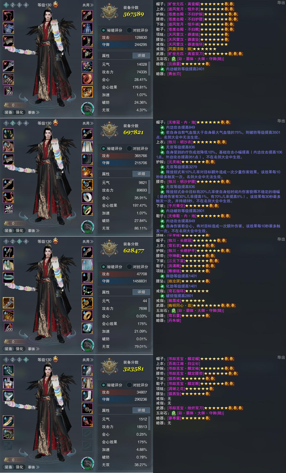 【装备】130级,焚影圣诀PVP567589,焚影圣诀PVE697821,明尊琉璃体PVE628477,装备四323581