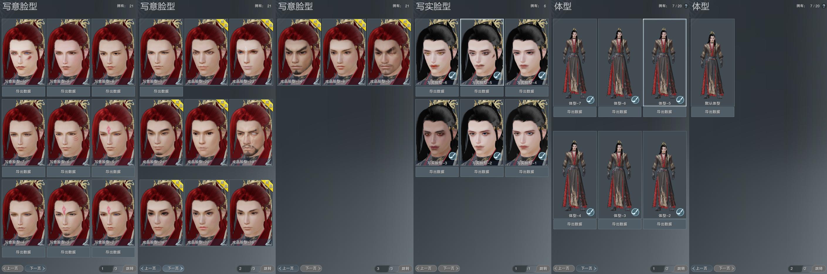 【捏脸】写意脸型21个,写实脸型6个,体型7个