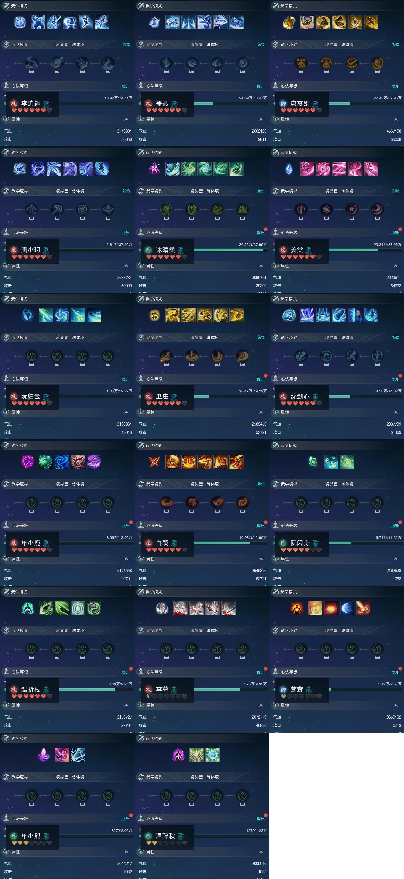 【同伴】李逍遥82级境界壹,盖聂78级境界壹,康宴别77级境界壹,唐小珂77级境界壹,沐晴柔77级境界壹,姜棠意75级境界壹,阮归云72级境界壹,卫庄意72级境界壹,沈剑心71级境界壹,年小鹿69级境界壹,白鹊志69级境界壹,阮闲舟68级境界壹,温折枝67级境界壹,李萼志67级境界壹,茸茸志57级境界壹,年小熊55级境界壹,温辞秋51级境界壹