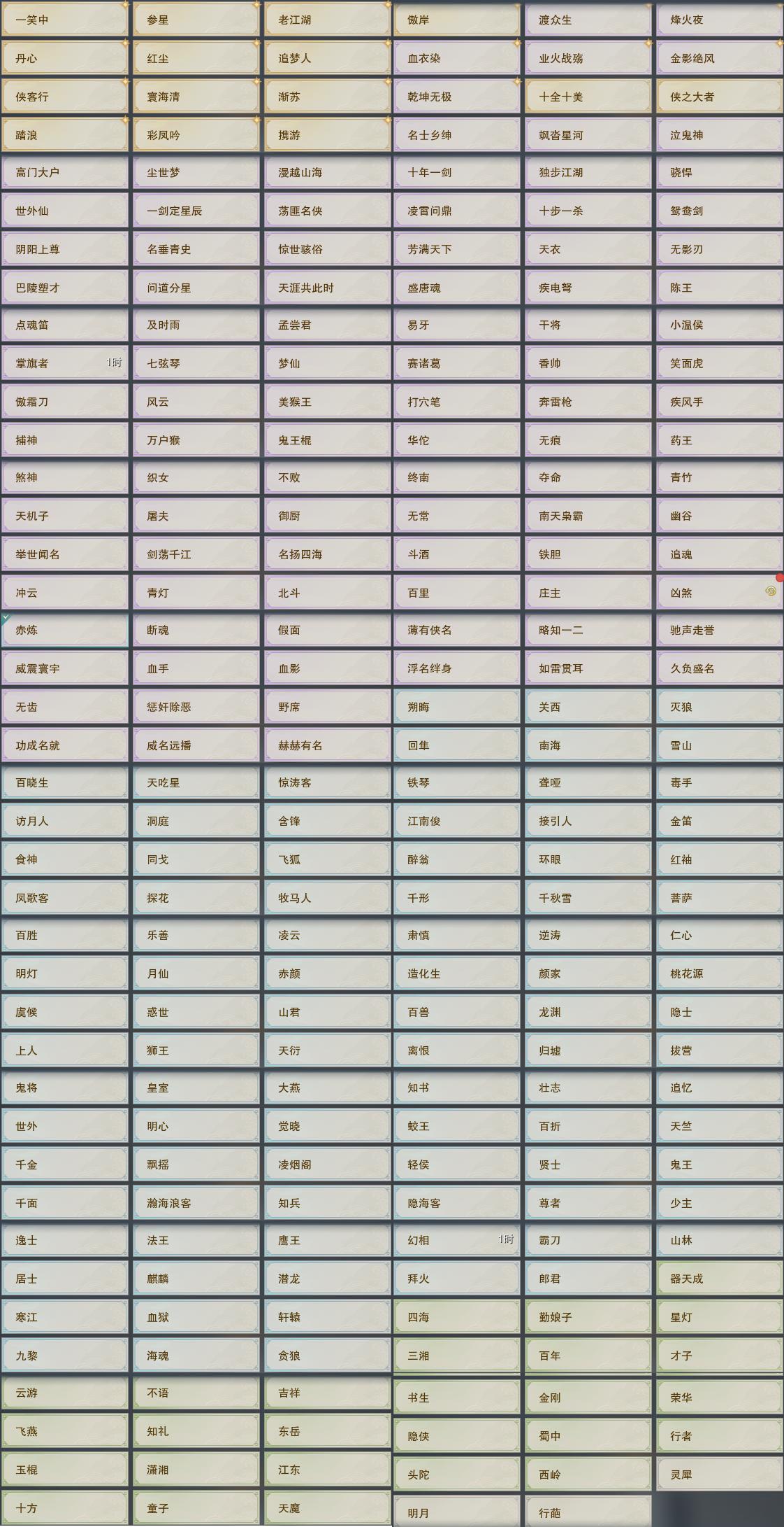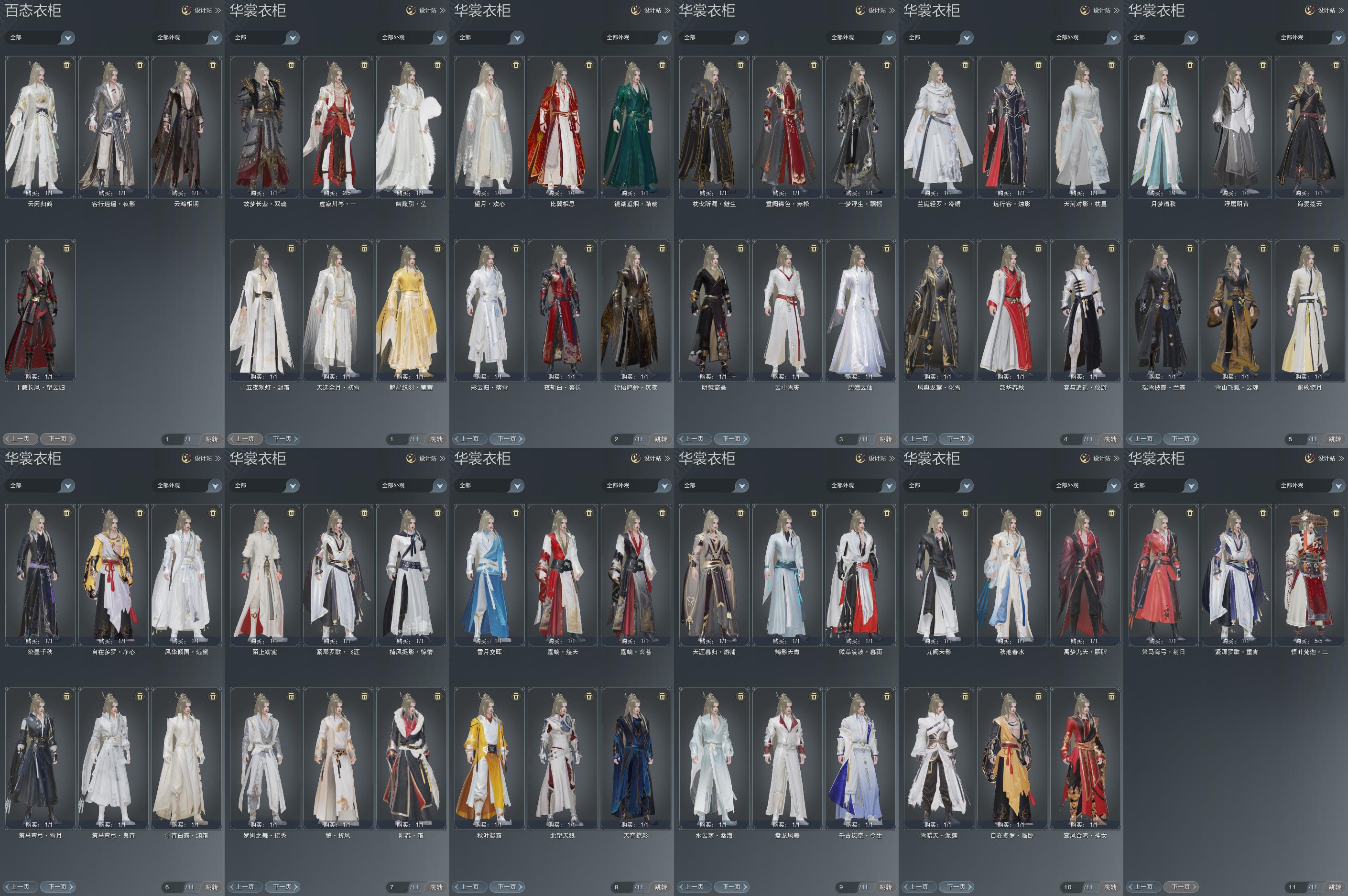 限时限量:[水云寒桑海, 明镜高悬, 兰庭冷绣, 红九天, 微草暮雨, 天涯游浦, 霆螭玄苍, 霆螭煌天, 中宵渊霜, 容与攸游, 烟花套, 黑枕戈, 镜湖踏晓, 十二周年工作服, 客行逍遥夜影, 云闲归鹤]