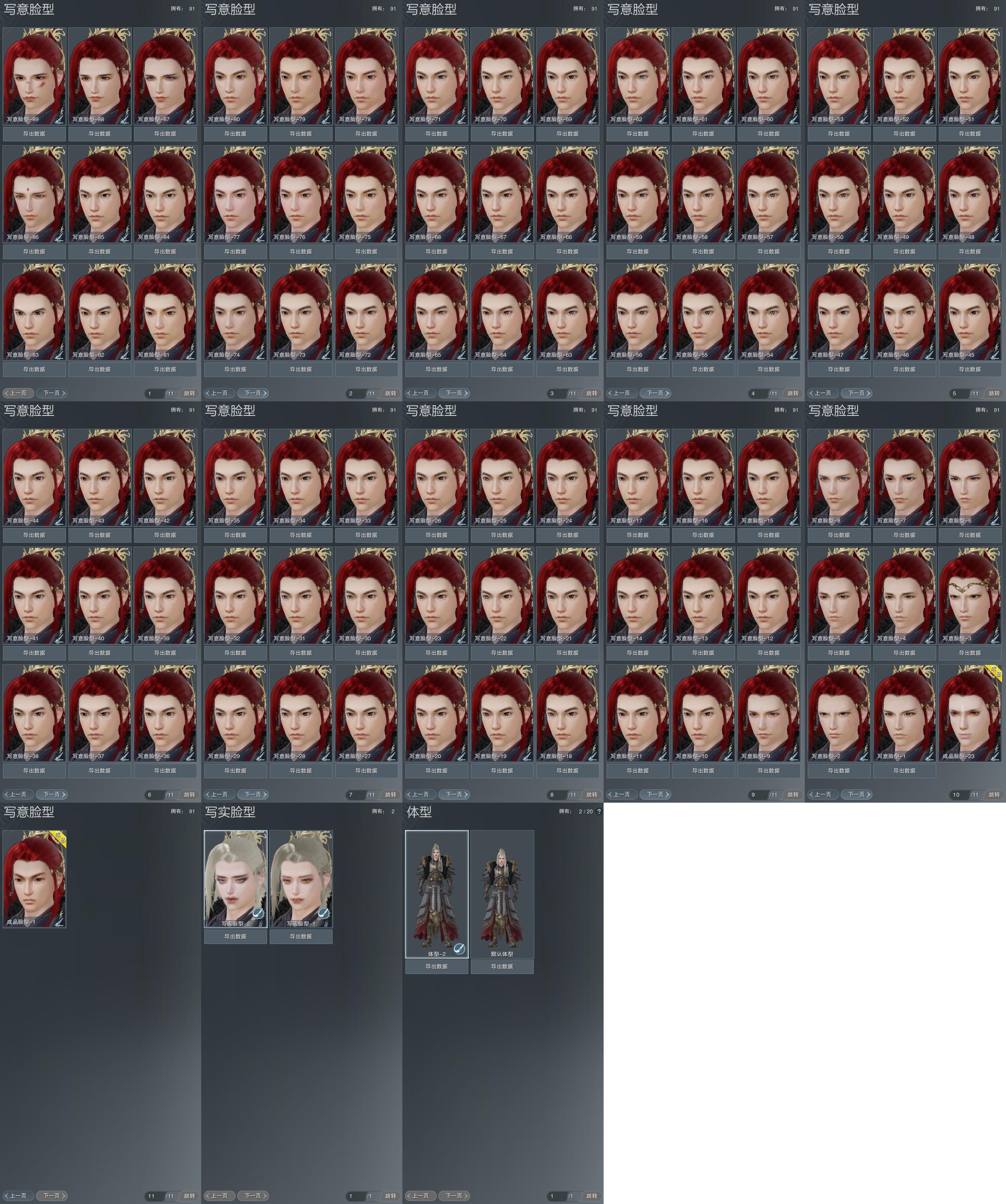 【捏脸】写意脸型91个,写实脸型2个,体型2个