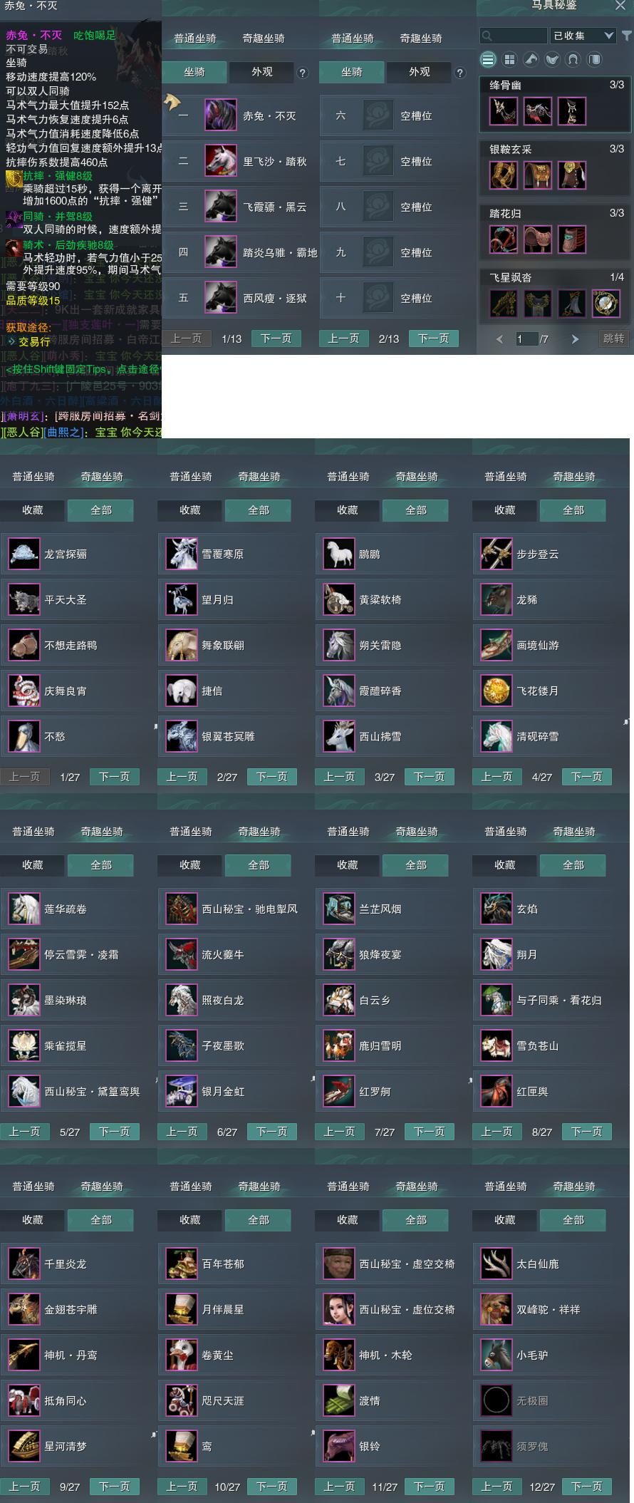 【坐骑】5个[踏炎霸地, 西风瘦逐狱, 飞霞骠黑云, 里飞沙踏秋, 赤兔不灭]