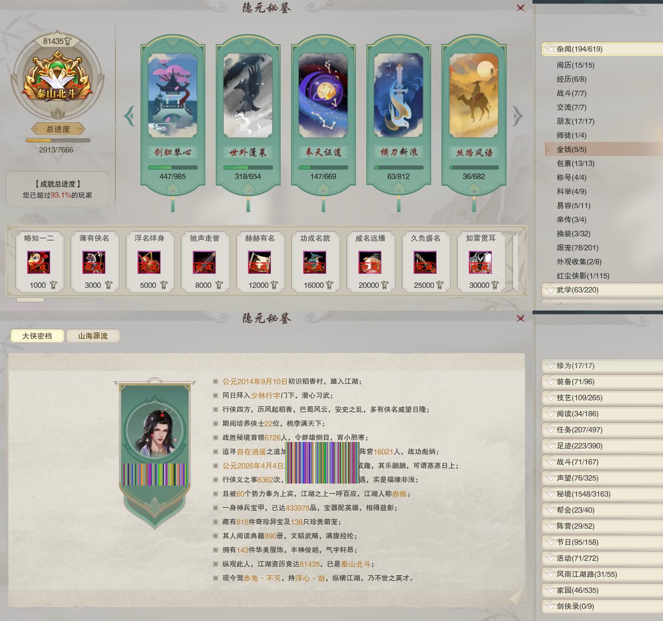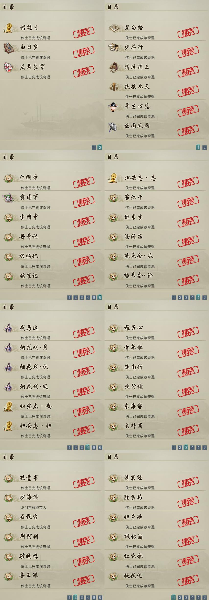 【奇遇】9个[白日梦, 黑白路, 平生心愿, 惜往日, 少年行, 扶摇九天, 故园风雨, 清风捕王, 庆舞良宵]