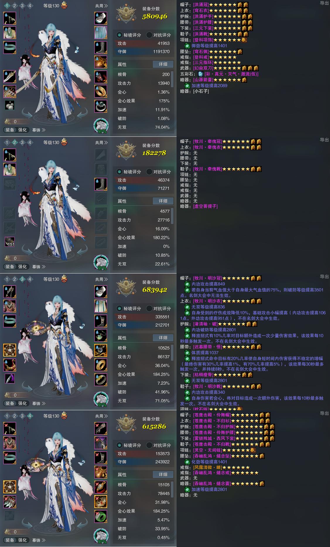【装备】130级,明尊琉璃体PVE580946,装备二182278,装备三PVE683942,装备四PVP615286