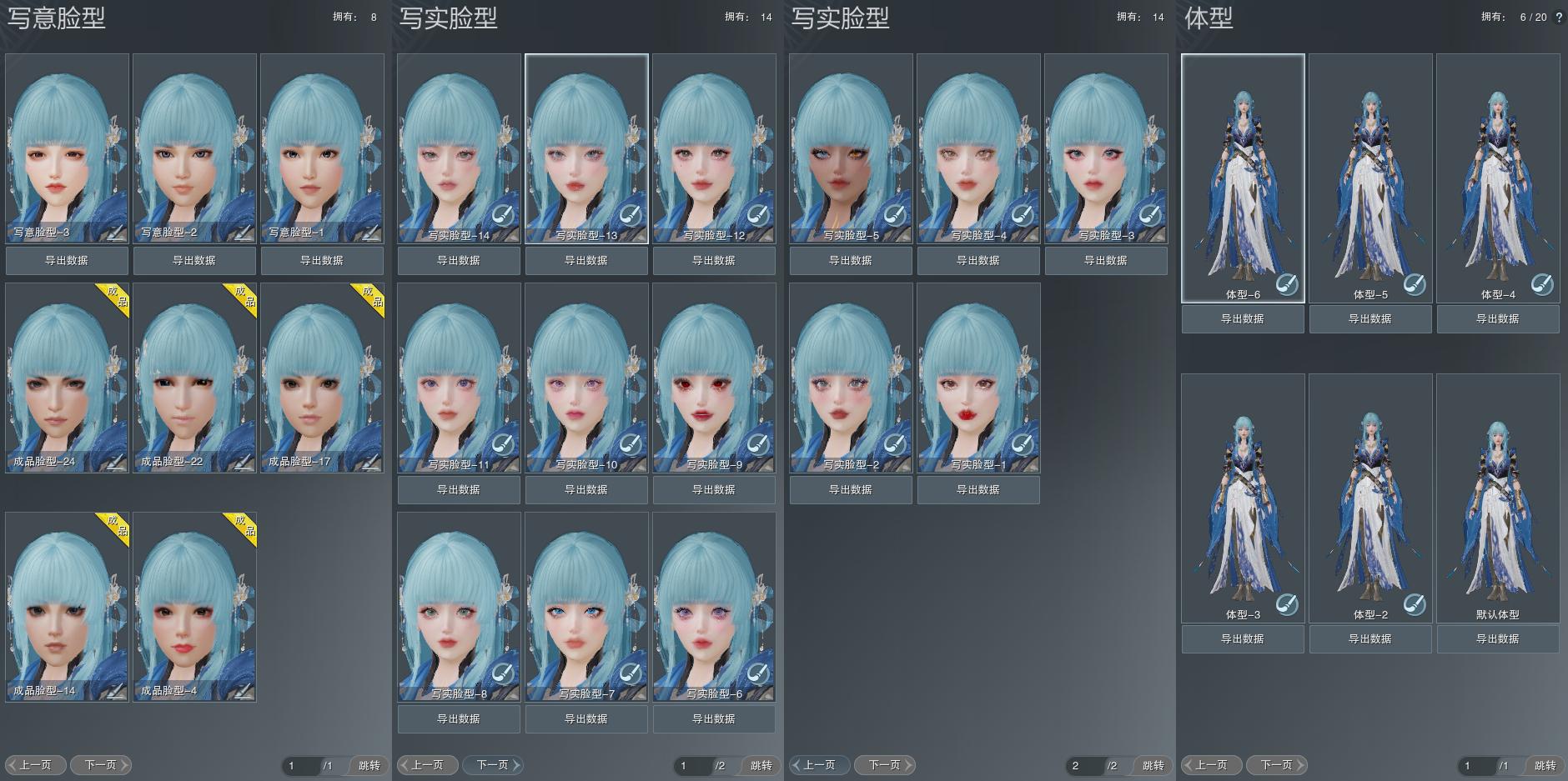 【捏脸】写意脸型8个,写实脸型14个,体型6个
