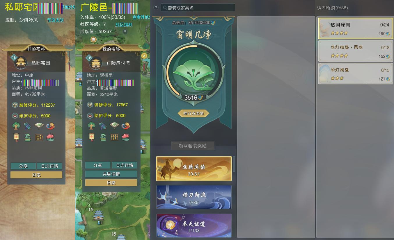 【家园】房屋等级16,社区等级了,私邸宅园,梓行点3516
