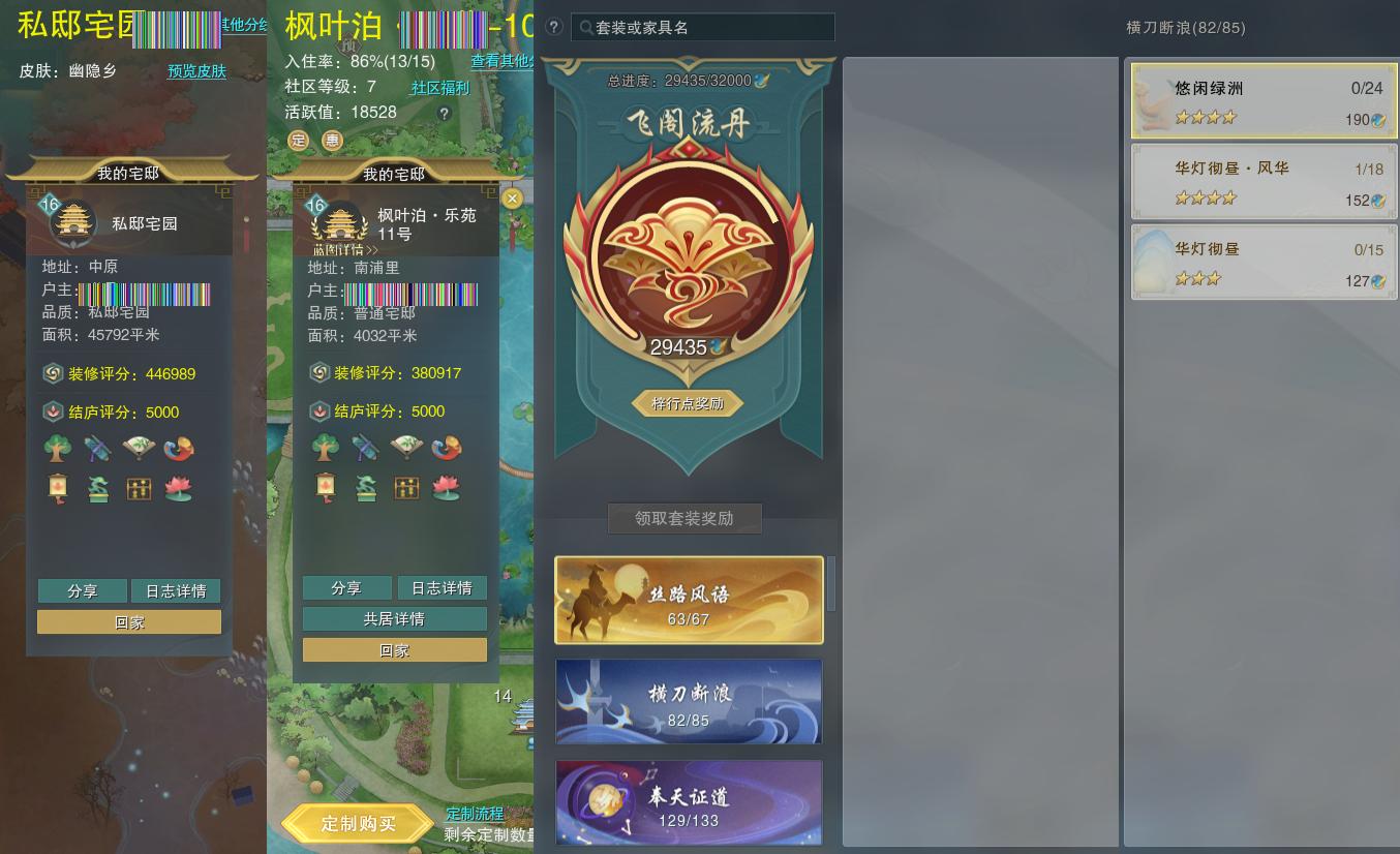 【家园】房屋等级16,社区等级了,私邸宅园,梓行点29435