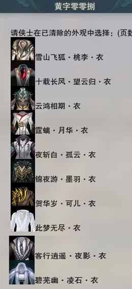 限时限量:[蓝沐云, 道袍, 微草盘京, 天涯旌湖, 十三万资历衣, 十六万资历衣, 中宵渊霜, 镜湖吹荷, 镜湖云遥, 镜湖踏晓, 镜湖阑珊, 琴台顾素手, 十四周年工作服, 云闲归鹤, 浪天涯狂霄, 白刺客服]