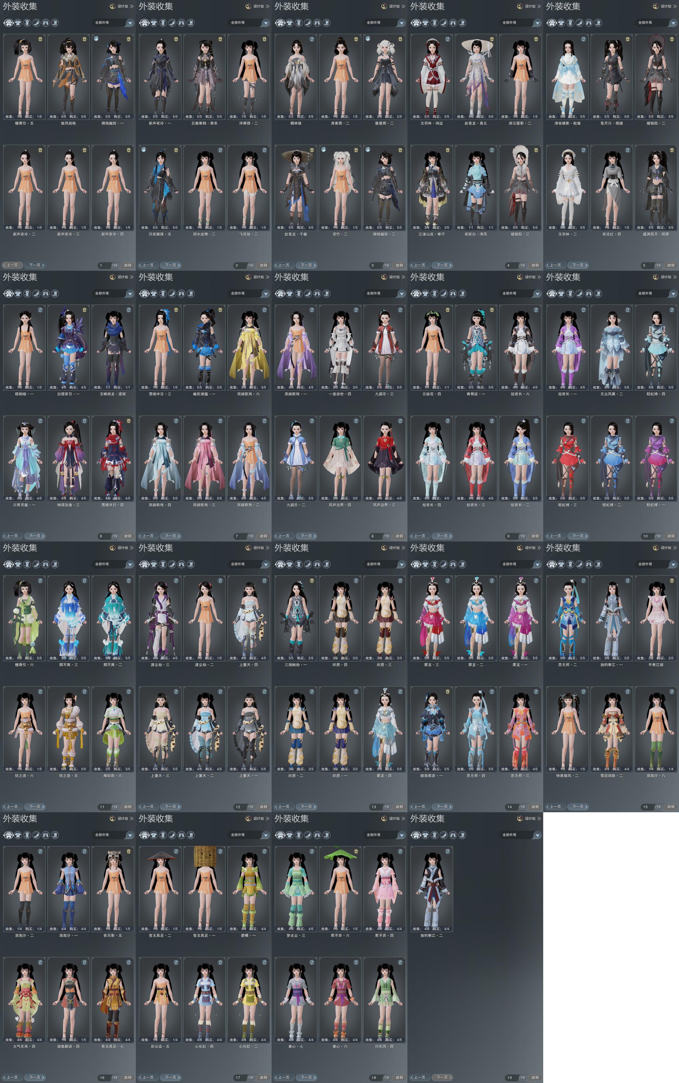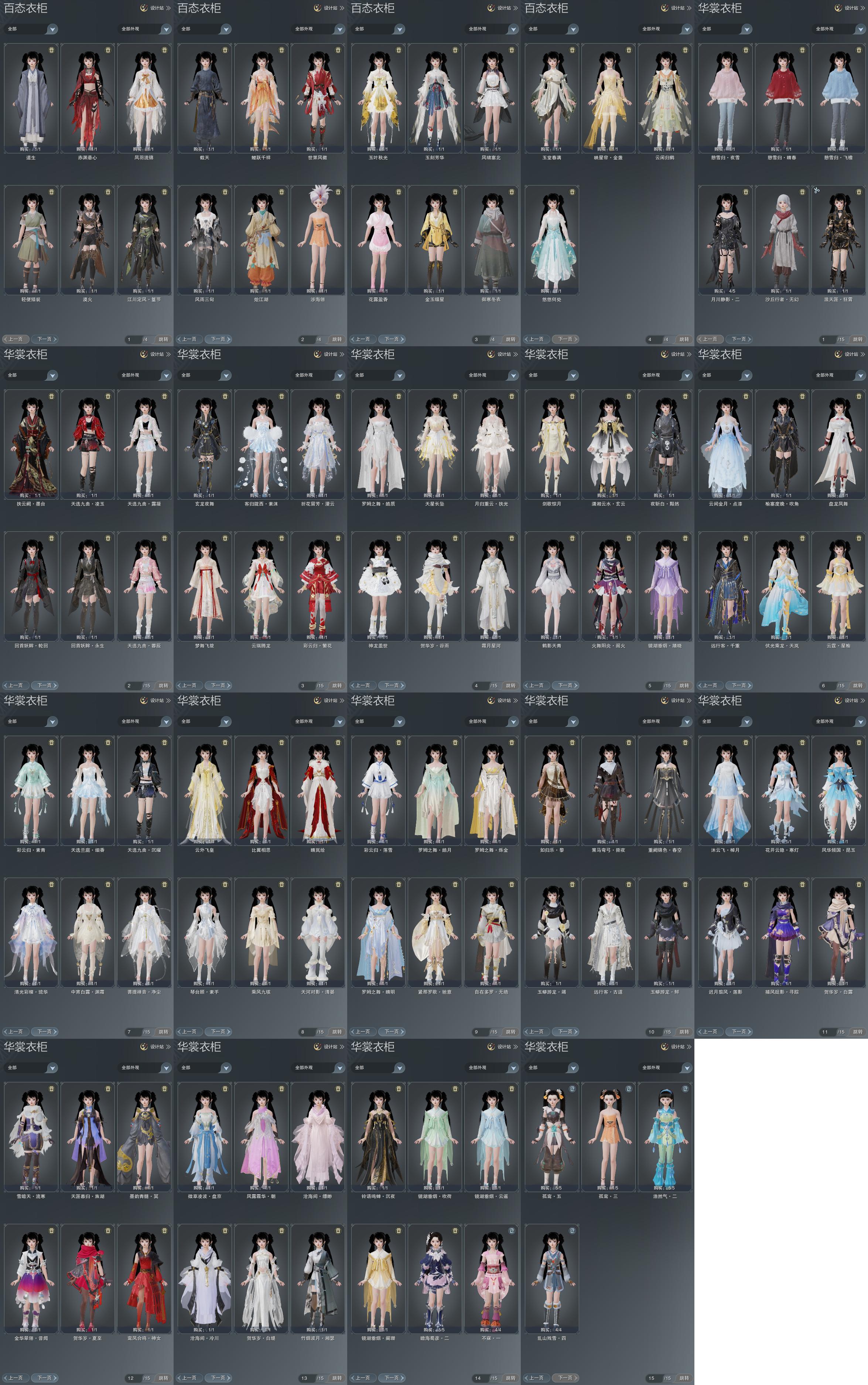 单盒成衣:[白腿盒衣, 蓝腿盒衣, 黑楼兰衣, 黄如归衣, 蓝钻盒衣, 蓝陇西成衣]