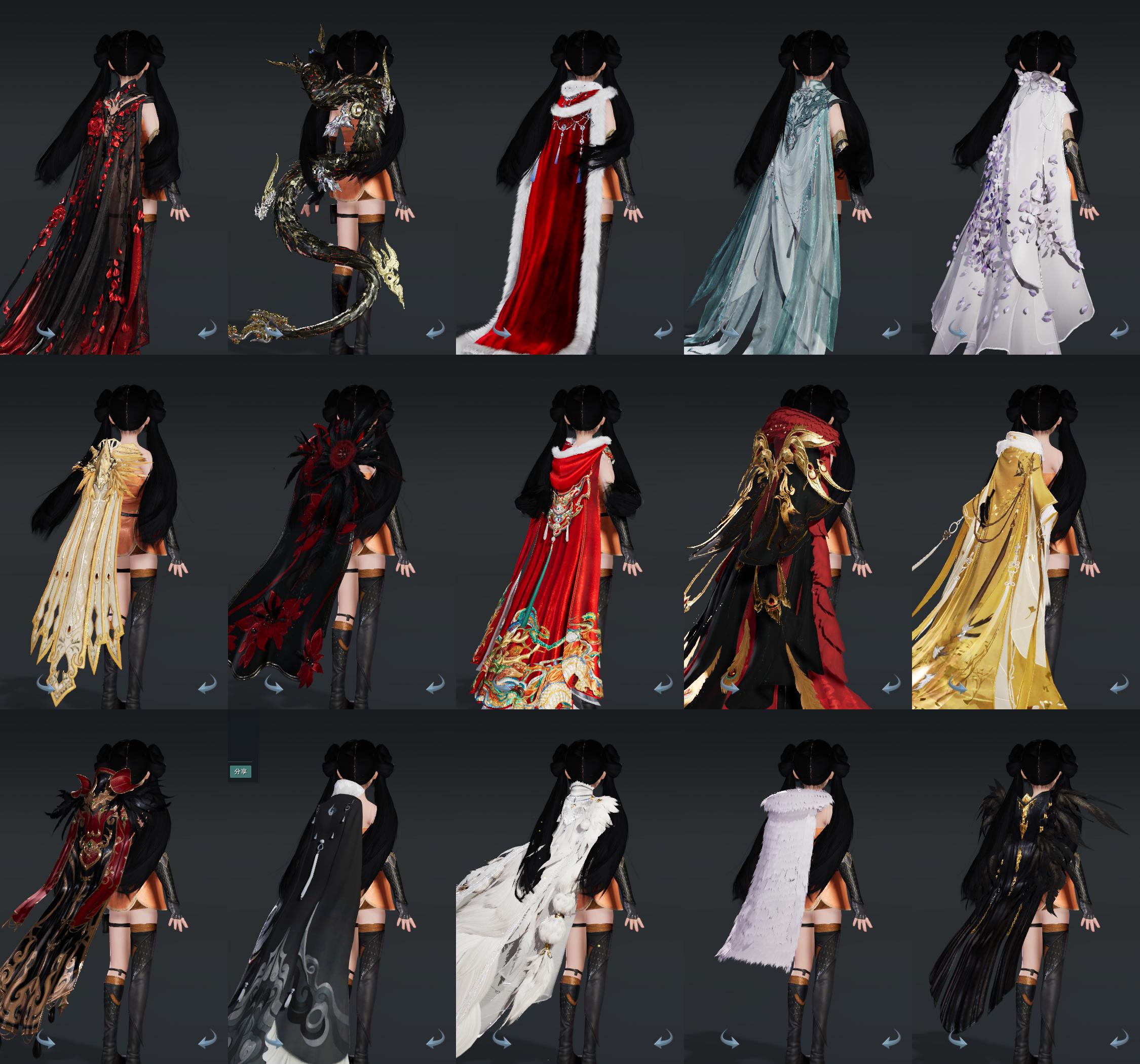 【披风】20个,[红盒子披风, 7W资历披风, 情R枕, 14W资历披风, 青盒子披风, 一代黑, 三山披风, 奇遇披风, 叽盒子披风, 龙盒披风, 苍二盒披风, 白狐裘, 云麒赫奕, 仙剑披风, 赤庭葳蕤]