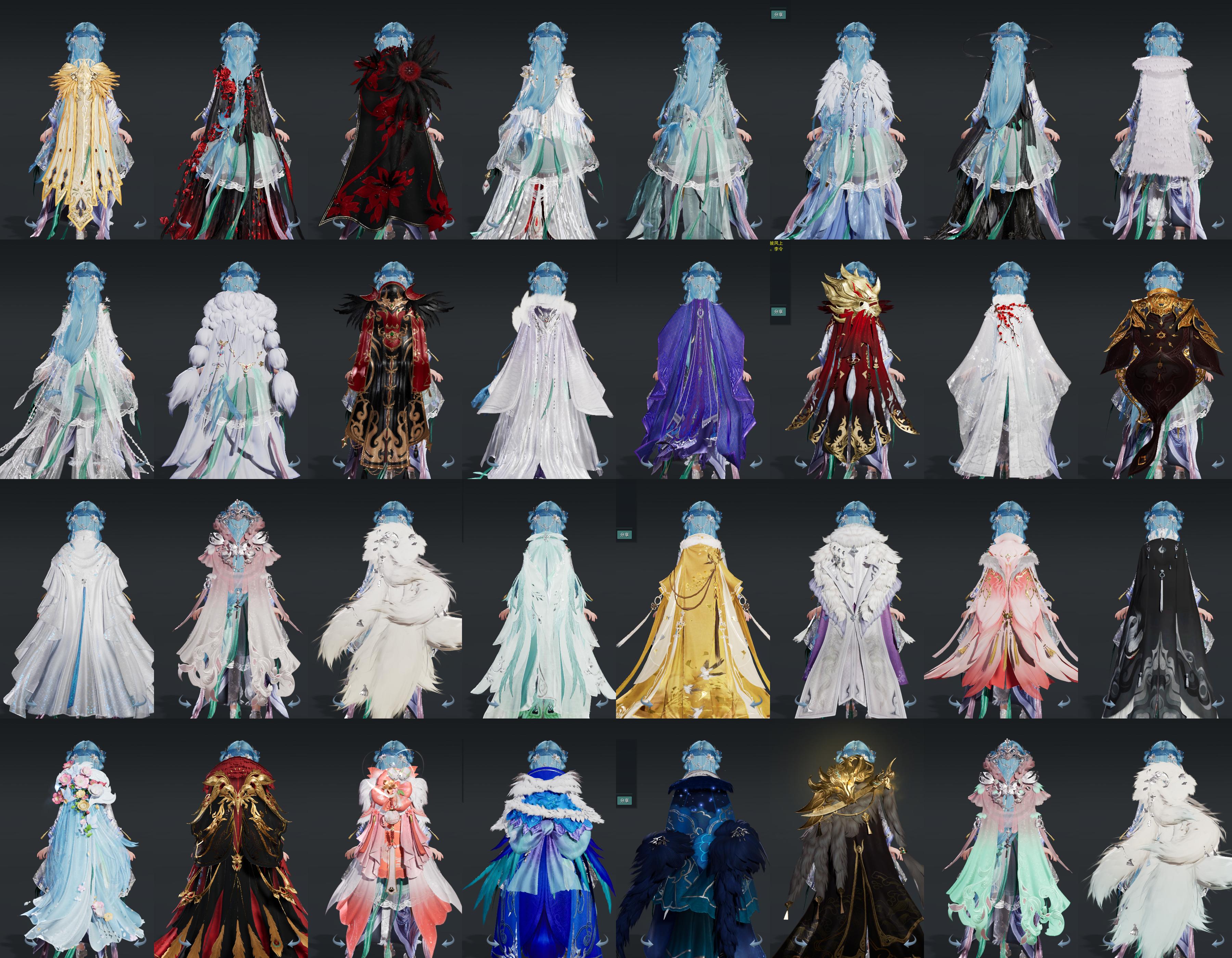 【披风】36个,[7W资历披风, 熔金烈风, 天火之眼, 狐狸毛, 雪啸刚风, 红盒子披风, 狐狸毛, 情R枕, 14W资历披风, 蓝盒子披风, 青盒子披风, 三山披风, 粉盒子披风, 叽盒子披风, 歌盒子披风, 蓬莱盒子披风, 猪盒子披风, 刀盒子披风, 毒盒子披风, 钰瓣, 钰瓣, 咩盒披风, 狼头, 扇盒披风, 星空, 兔子, 透碧宵, 三豪披风, 白婚纱披风, 空山闲雪, 云麒赫奕, 赤庭葳蕤]