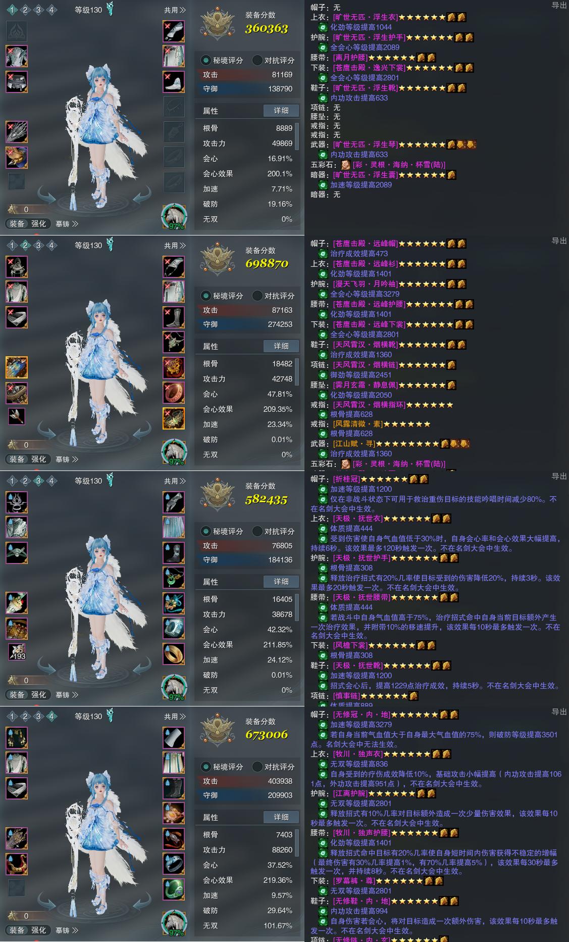【装备】130级,长歌装备一360363,长歌装备二698870,长歌装备三582435,莫问PVE673006
