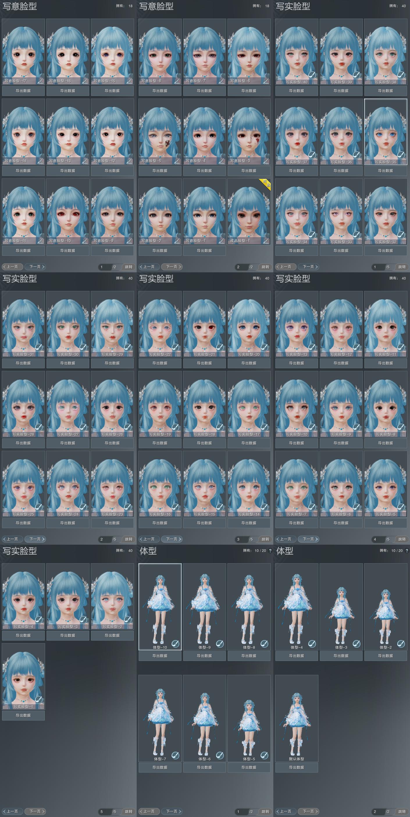 【捏脸】写意脸型18个,写实脸型40个,体型10个