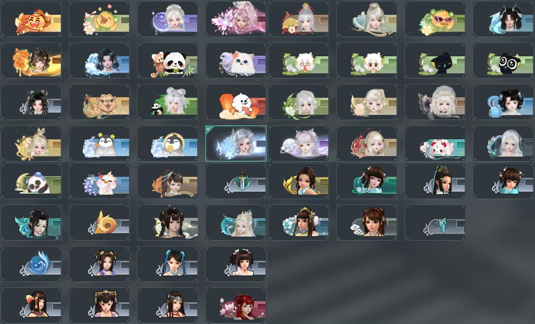 盒子:[丝路盒, 雪月盒, 踏云盒, 叽盒, 二代花朝盒, 红盒, 歌盒, 一七盒, 猪盒, 二七盒, 四代七夕盒, 粉盒, 一中蓝盒, 蓝盒, 貂盒, 红腿盒(缺白发), 毒盒, 三中盒, 蓬莱盒, 四中蓝盒, 飞天盒, 白菩提盒(豪), 青盒, 二代重阳盒, 三代绿重阳盒(缺白发), 白如归盒(缺黑发), 绿如归盒, 一代花朝绿盒(缺白发), 棉袄盒, 五中浅绿盒, 龙盒(缺披风), 柿盒, 蓝蝴蝶盒, 云间盒, 玉璃盒, 华灯夕雪(标), 花滑盒, 雏菊盒, 咩盒, 扇盒, 蓝钻盒, 踏青盒, 灵龙盒, 绿幽昙(豪)(缺黑发), 蓝兔盒, 圆舞盒, 黑傣族盒(豪), 白持君令(豪), 八七盒, 红椿山盒(标), 紫椿山盒(标), 黑椿山盒(豪), 蓝椿山盒(豪), 绿龙隐(豪), 天星盒, 红香盒, 游龙盒, 婚纱盒, 粉鹿盒, 海阔盒, 熊猫盒, 茄盒, 妙乐盒, 梦盒, 九七盒, 兰陵盒, 蓝观灯盒(标), 白蛇盒, 人间夜色盒, 墨龙盒, 潮涌盒, 白鹭笠盒(豪), 络羽盒, 瑶台仙梦礼盒, 黑月下(标), 蓝葵盒, 红上火(标), 灰陇西(豪), 白陇西(标), 蓝问刀(标), 白战国(标), 绿浮光(标), 黄云香(标), 粉毛衣(标)]