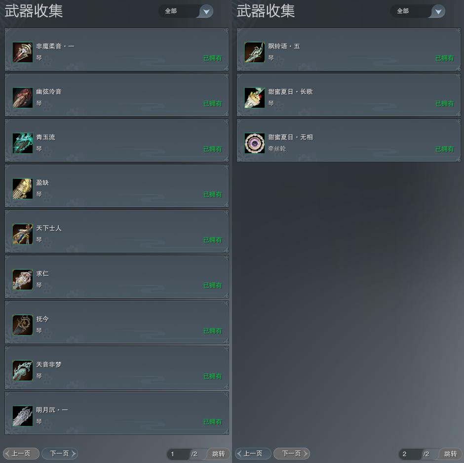 【拓印】6页外观收集,12武器拓印,拓印95CW青玉流,拓印95CW盈缺,拓印110CW天下士人,拓印110CW求仁,拓印120CW抚今,拓印120CW天音非梦