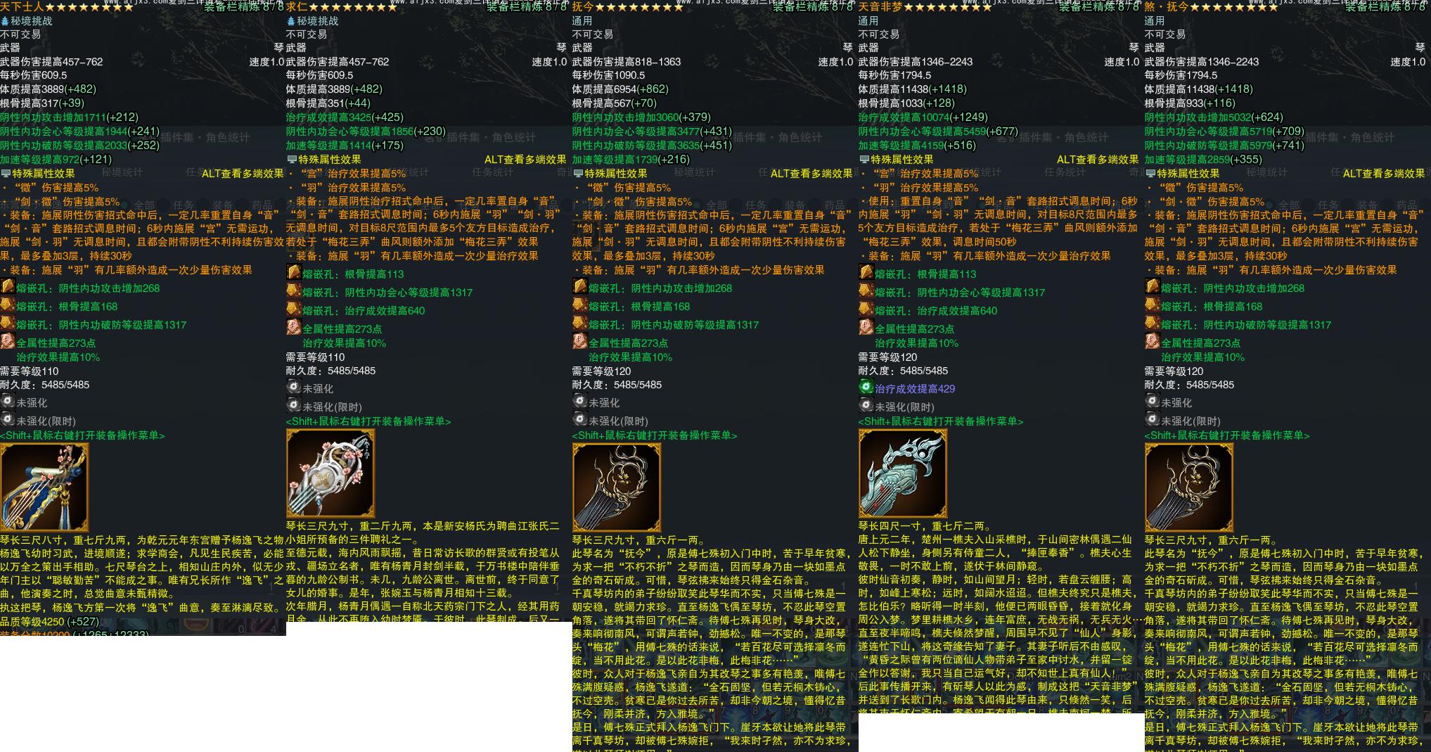 【橙武】(仅本门派)[120小铁*161, 130小铁*235, 十四W奇遇书*1, 奇遇书照影*1, 120奇遇CW煞·抚今, 110小铁*810, 100小铁*936, 95小铁*655, 90小铁*684, 80小铁*907, 70小铁*437, 120CW抚今, 120CW天音非梦, 110CW天下士人, 110CW求仁, 100CW青雀无尘, 100CW念庭兰, 95CW盈缺, 95CW青玉流, 90CW洞仙引, 80CW洛神清音, 70CW凤鸣秋梧, 70CW商山虹雨, 门派特效风雷瑶琴剑]