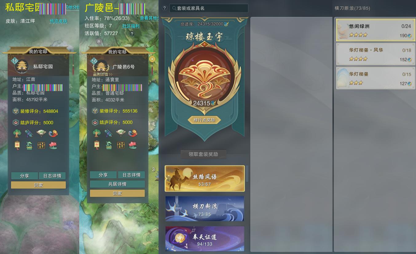 【家园】房屋等级16,社区等级了,私邸宅园,梓行点24315