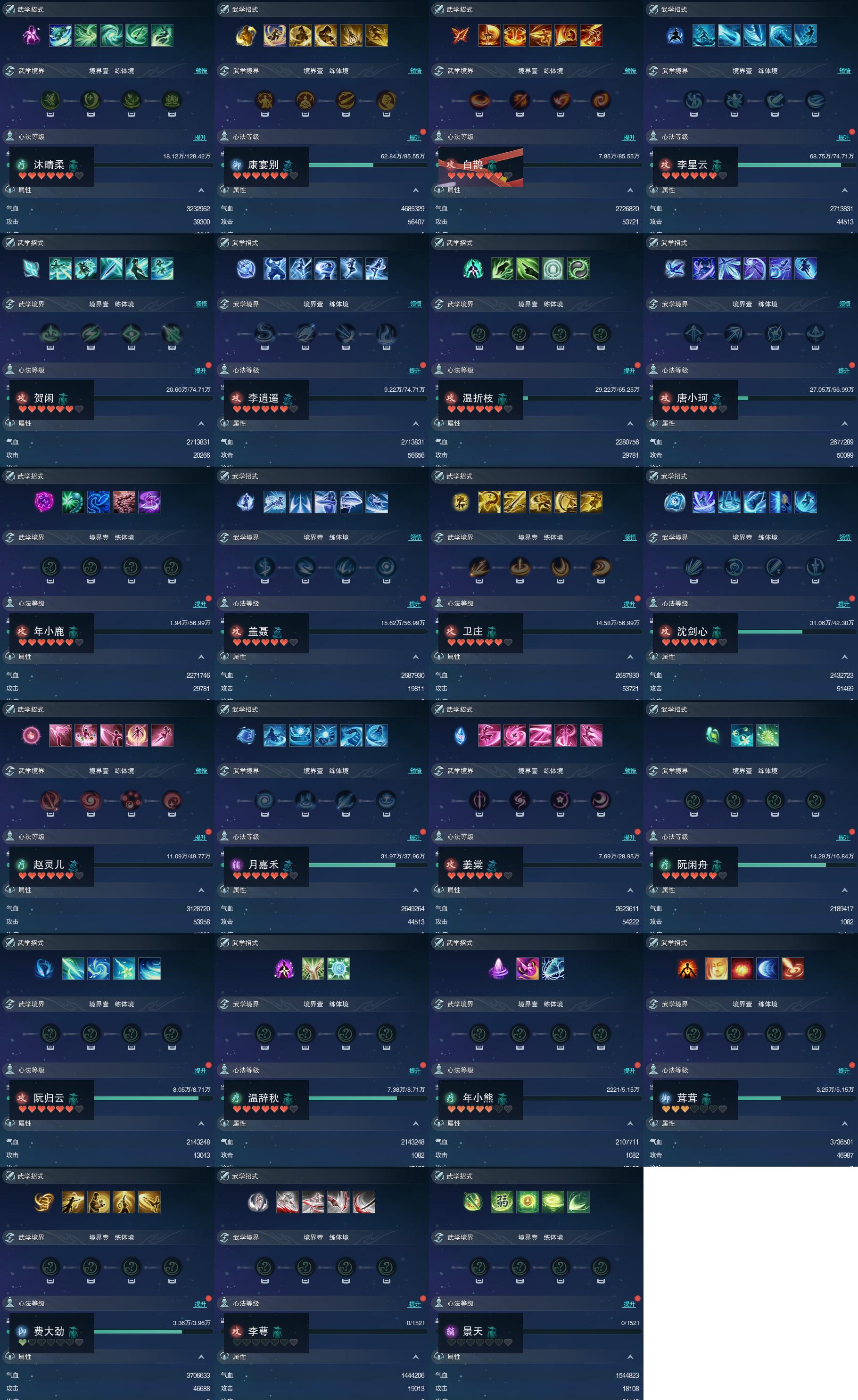 【同伴】沐晴柔86级境界壹,康宴别83级境界壹,白鹊志83级境界壹,李星云82级境界壹,贺闲志82级境界壹,李逍遥82级境界壹,温折枝81级境界壹,唐小珂80级境界壹,年小鹿80级境界壹,盖聂80级境界壹,卫庄志80级境界壹,沈剑心79级境界壹,赵灵儿79级境界壹,月嘉禾77级境界壹,姜棠意75级境界壹,阮闲舟71级境界壹,阮归云66级境界壹,温辞秋66级境界壹,年小熊62级境界壹,茸茸志62级境界壹,费大劲60级境界壹,李萼志1级境界壹,景天志1级境界壹