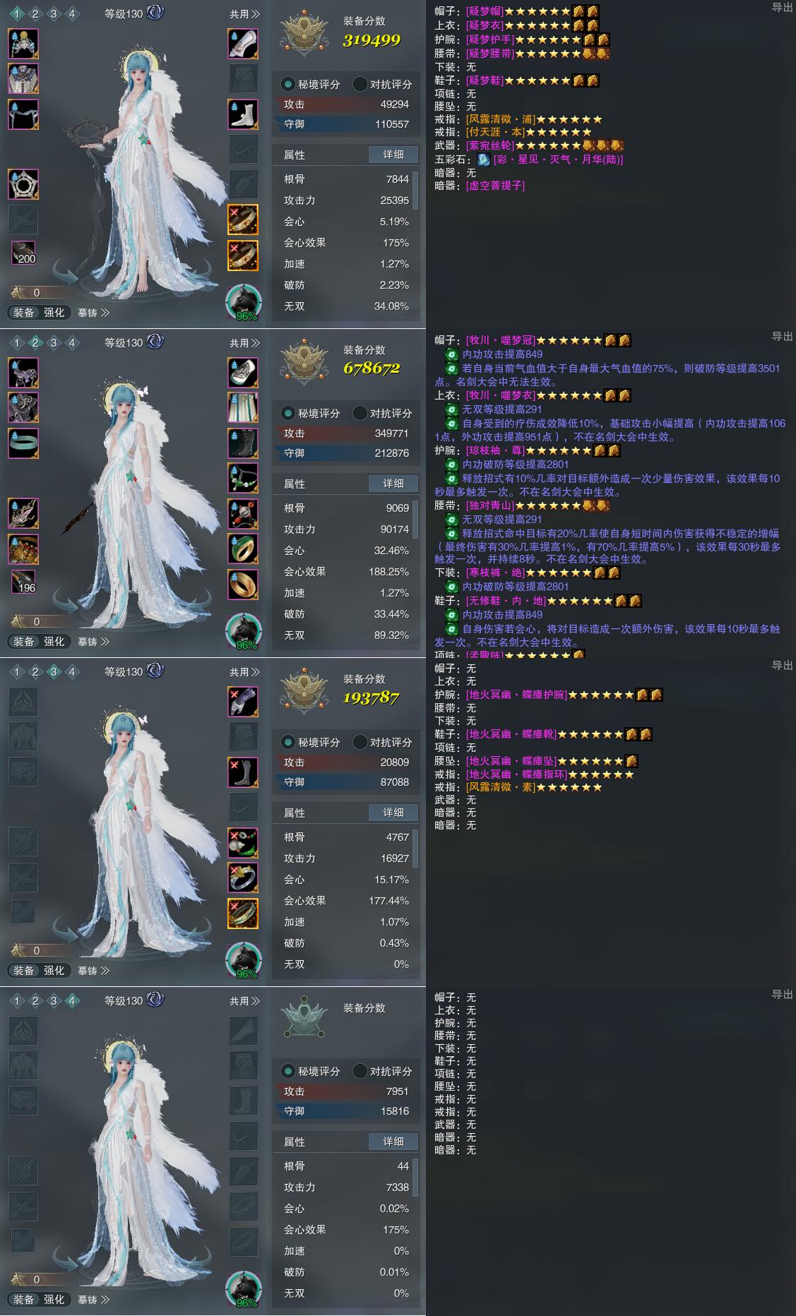 【装备】130级,装备一319499,毒经PVE678672,装备三193787,装备四0