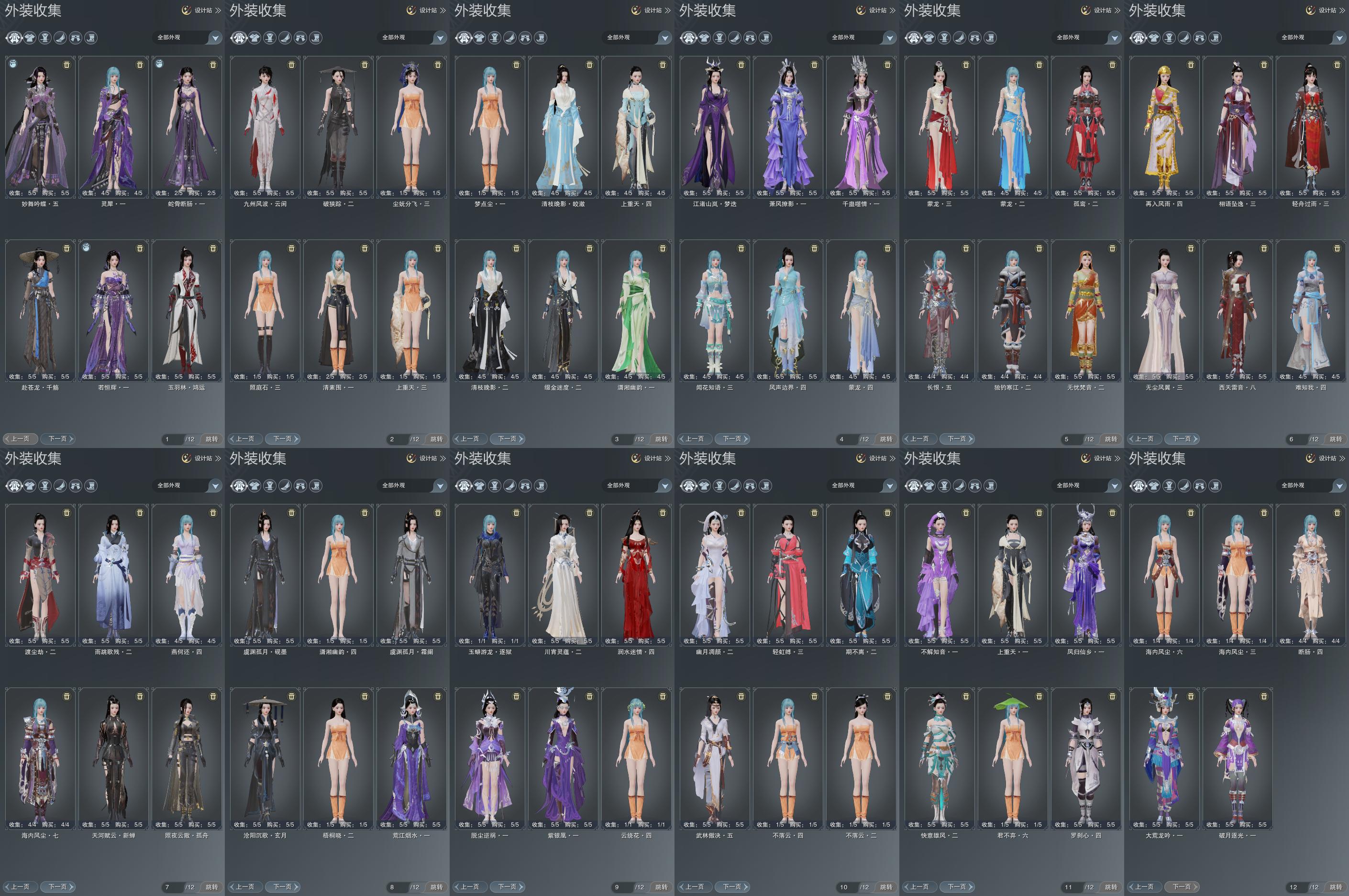 限时限量:[富婆套, 水云寒雪涛, 兰庭凤香, 蓝九天, 红玫瑰, 白封川, 重天梨棠, 霆螭月华, 十三万资历衣, 雾影绛英, 容与自适, 紫长安, 烟花套, 琴台顾鸣筝, 十二周年工作服, 玉悬窗棠语, 小红龙衣, 流夜窈蔚, 一期福袋成衣, 蓝水母, 粉水母, 天河对影云砂, 清商风饮驻春, 万川青绿黛瑾, 万川青绿辰砂, 蓝浪海, 粉浪海, 黄浪海, 紫清光, 蓝玉妆, 粉碧海, 黑碧海, 紫碧海, 绿游仙, 紫游仙, 风起苍原]