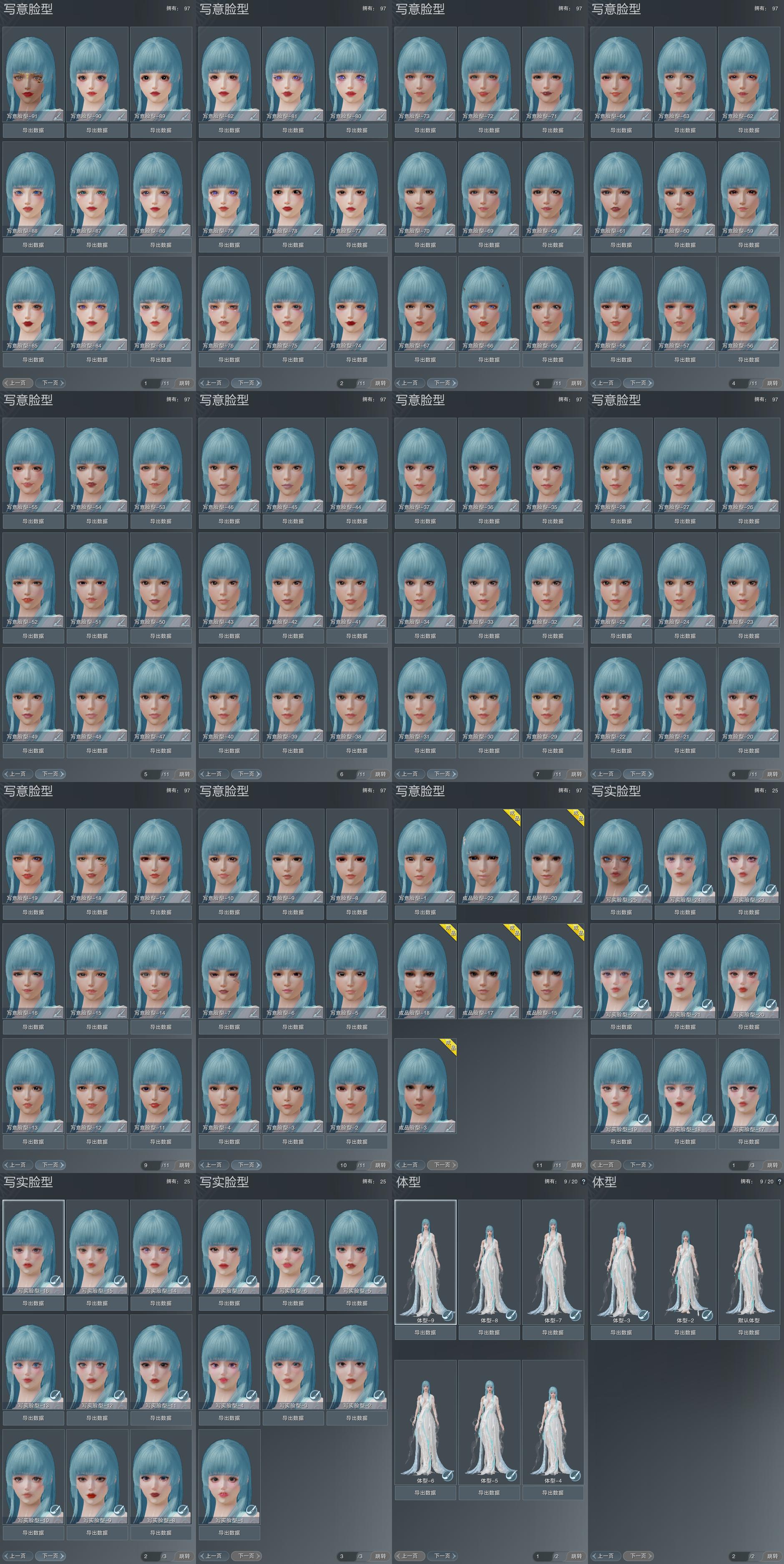 【捏脸】写意脸型97个,写实脸型25个,体型9个