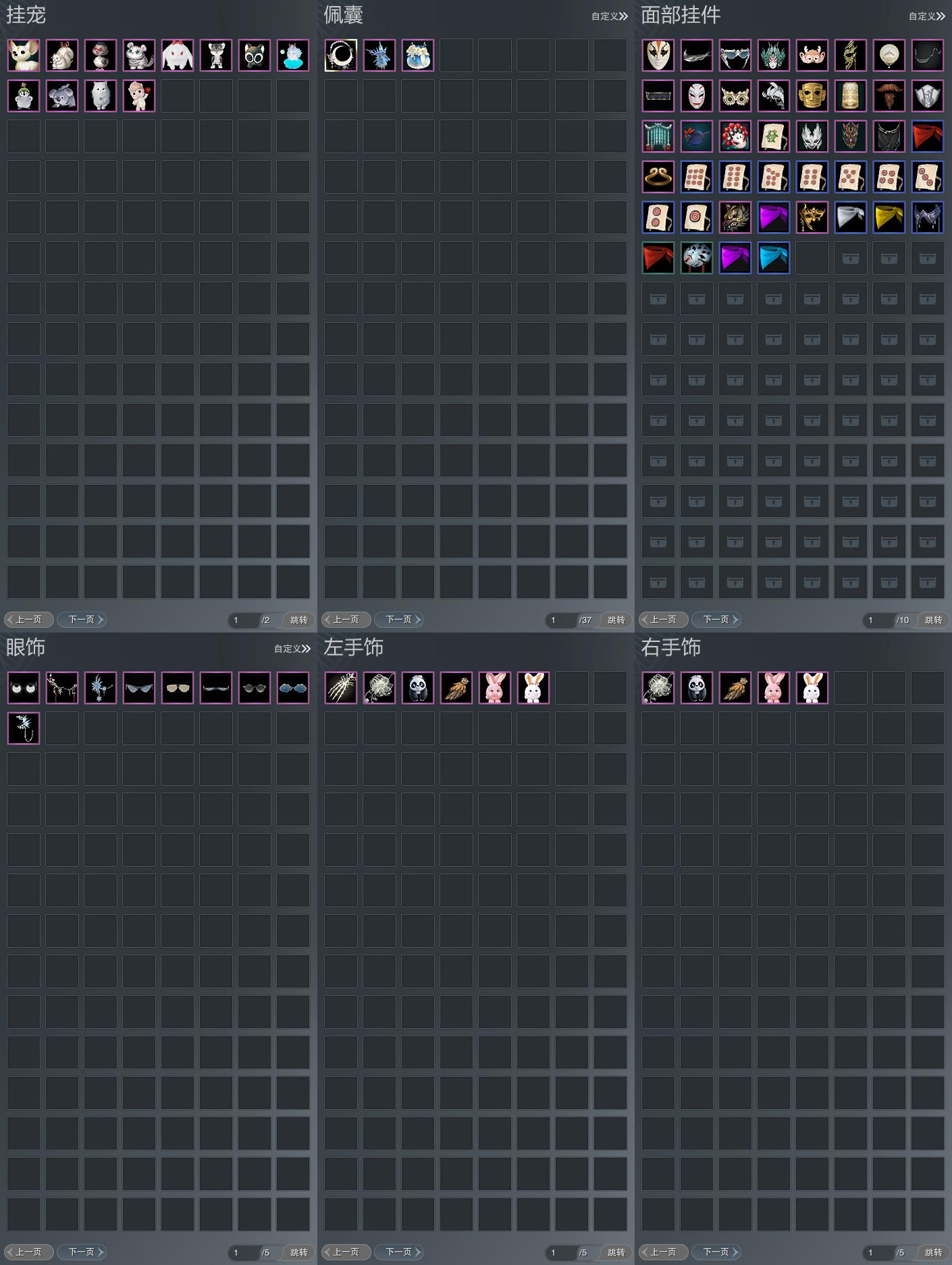 【面挂】44个[镜花浮名, 不见澜生, 梨园面具, 珠帘面挂, 金箍, 天妒画颜, 狡啮, 返魂, 怀梦, 祈黎明, 雪羽归, 黑绷带眼罩, 白练眼罩, 大光相面挂, 破阵面挂, 驱恶面挂, 黑焚心面挂, 绘面]