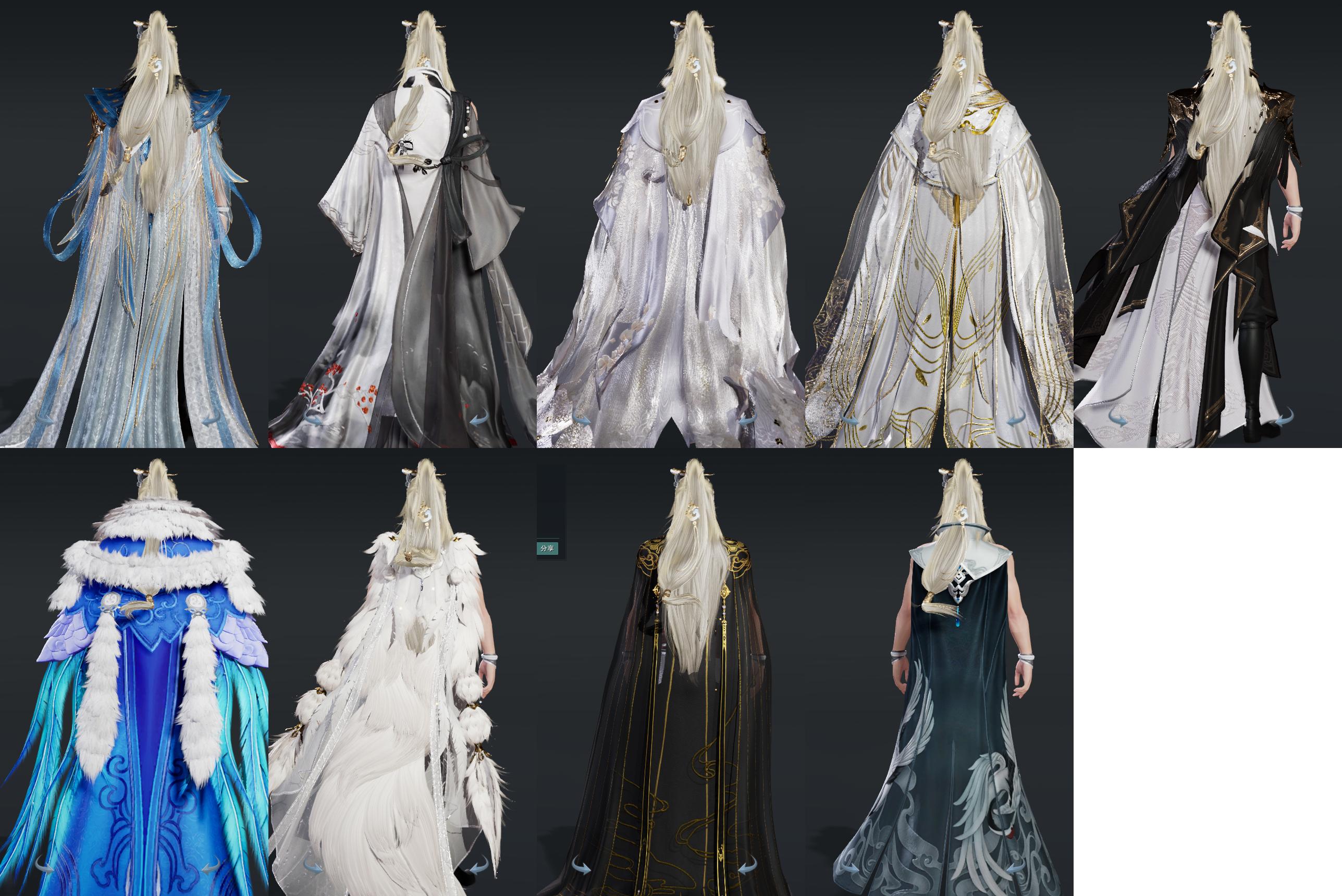 【披风】9个,[衍天预热披风, 蓝盒子披风, 青盒子披风, 秃盒子披风, 星演披风, 牛盒披风, 刀宗盒披风, 白狐裘, 玄锦流渊]