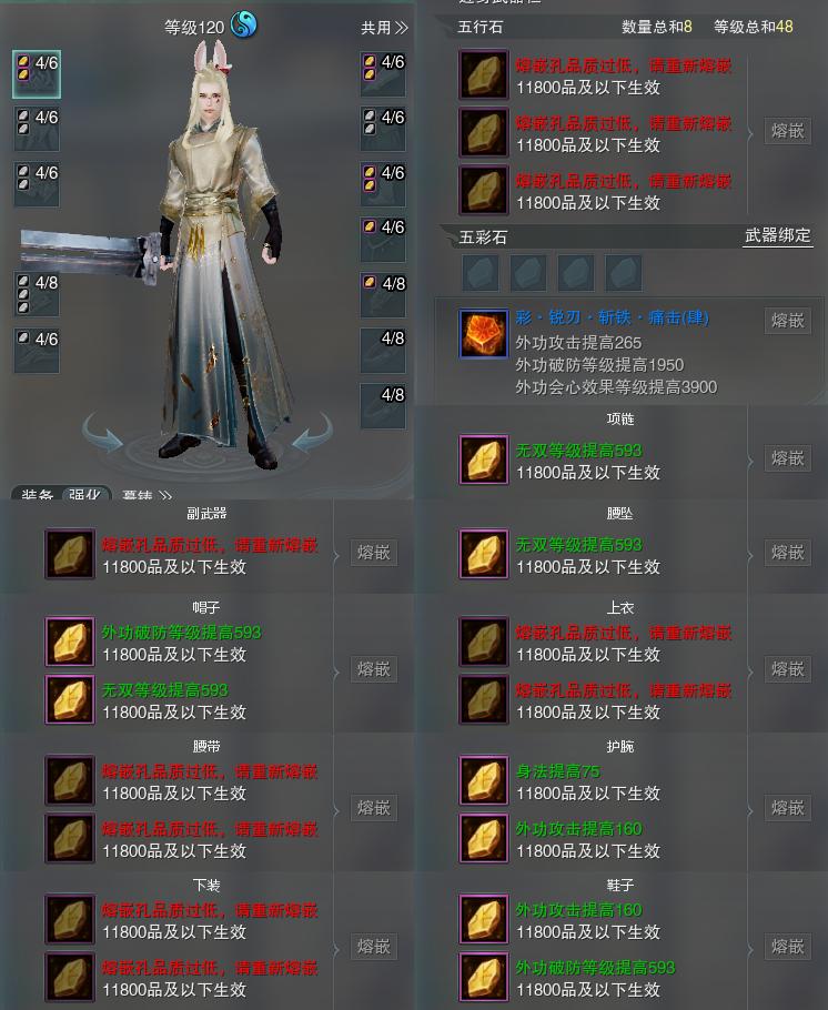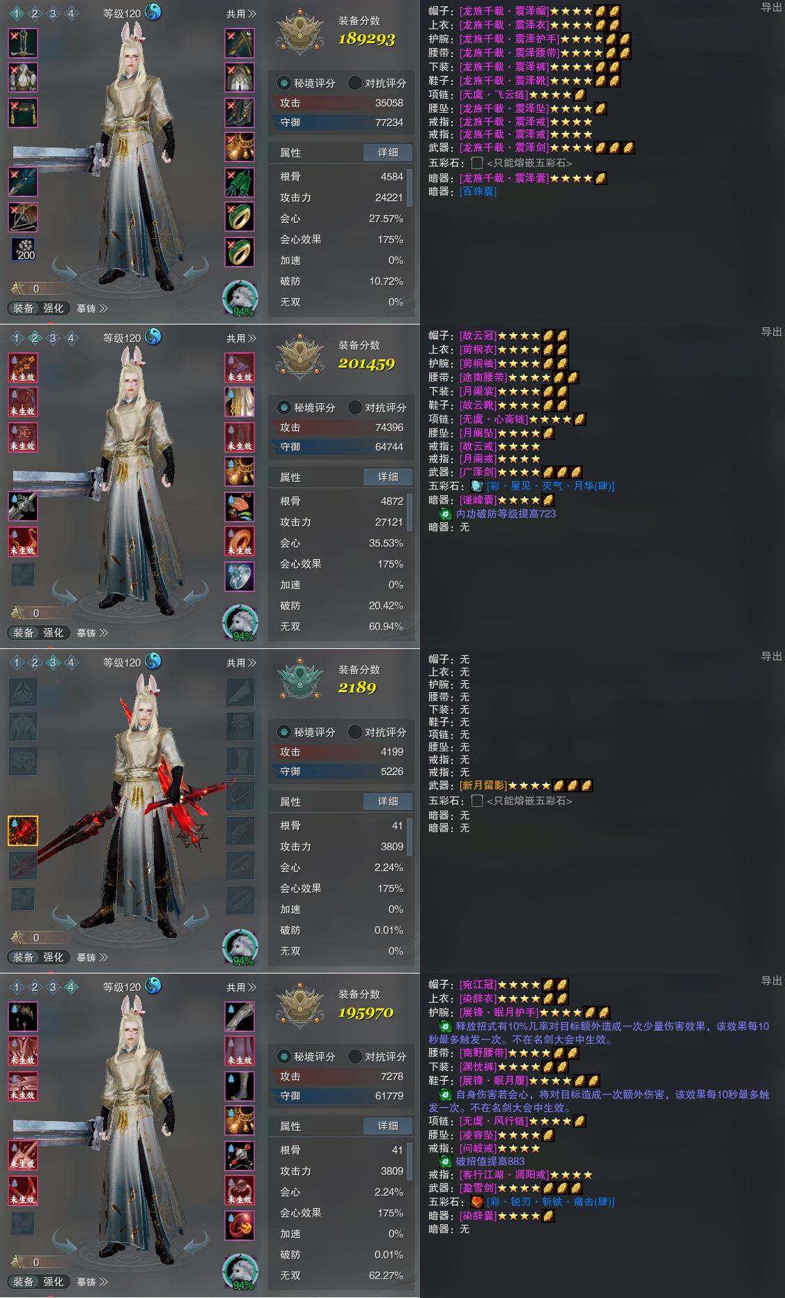 【装备】120级,装备一189293,装备二201459,装备三2189,装备四195970