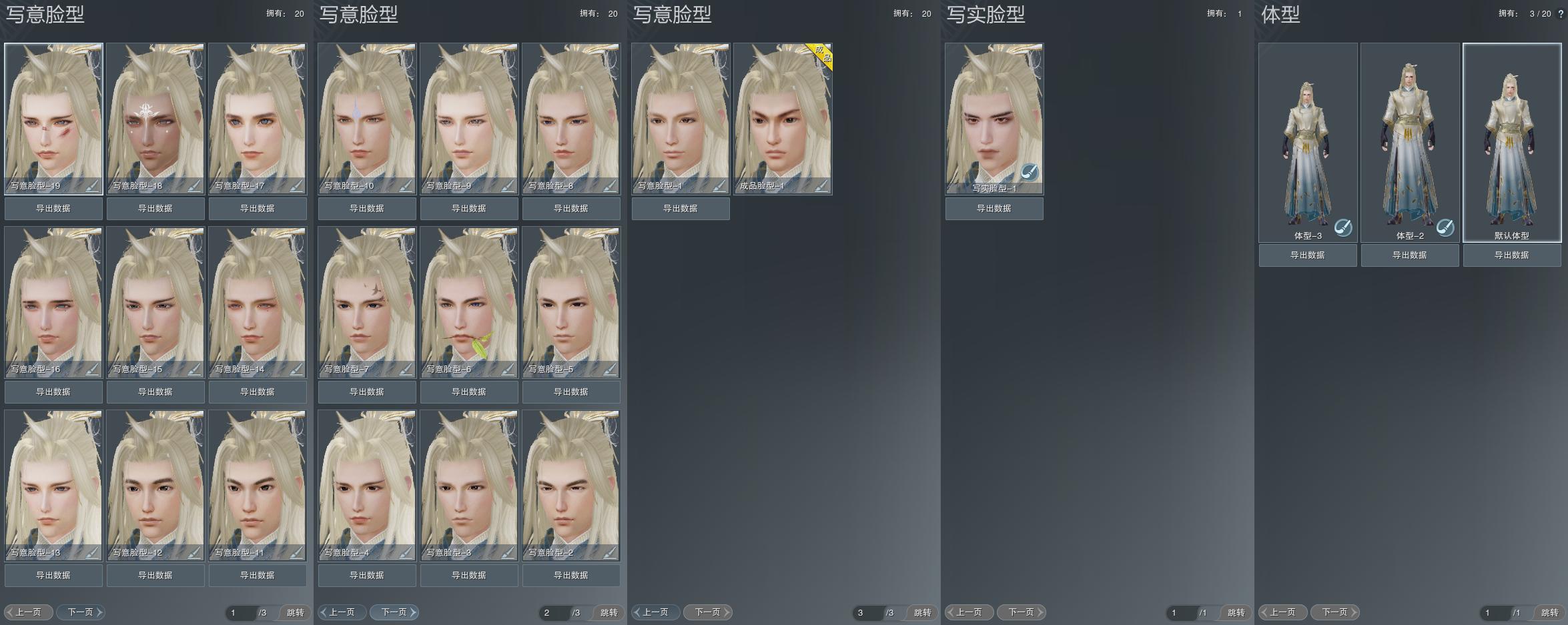 【捏脸】写意脸型20个,写实脸型1个,体型3个