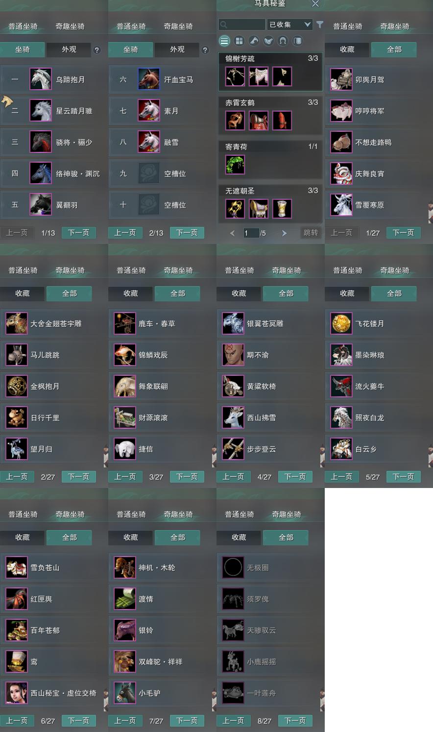 【坐骑】8个[星云踏月骓, 乌蹄抱月, 络神骏渊沉, 骁将骊少]