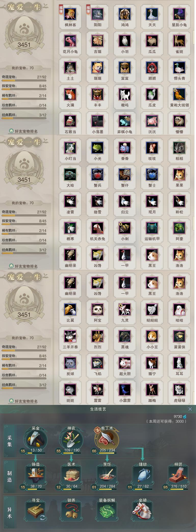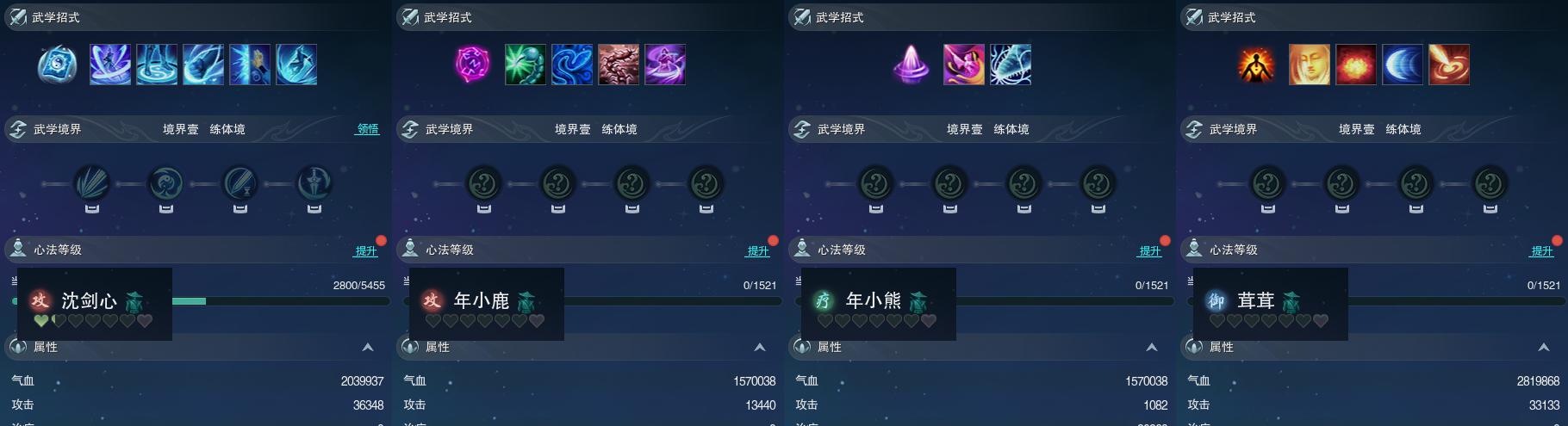 【同伴】沈剑心45级境界壹,年小鹿1级境界壹,年小熊1级境界壹,茸茸志1级境界壹