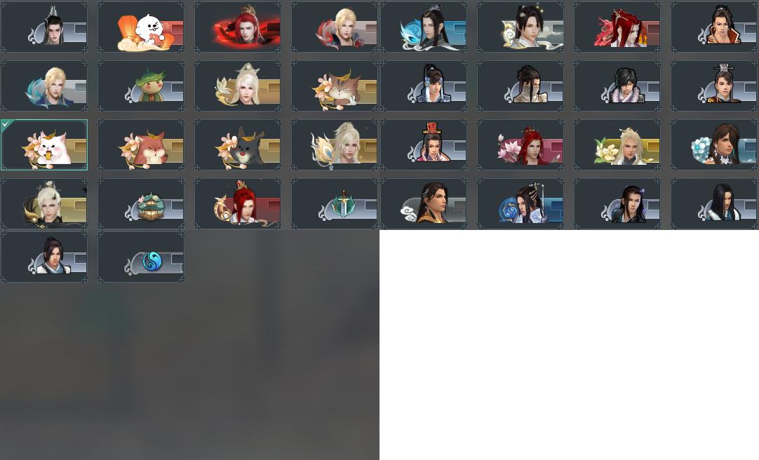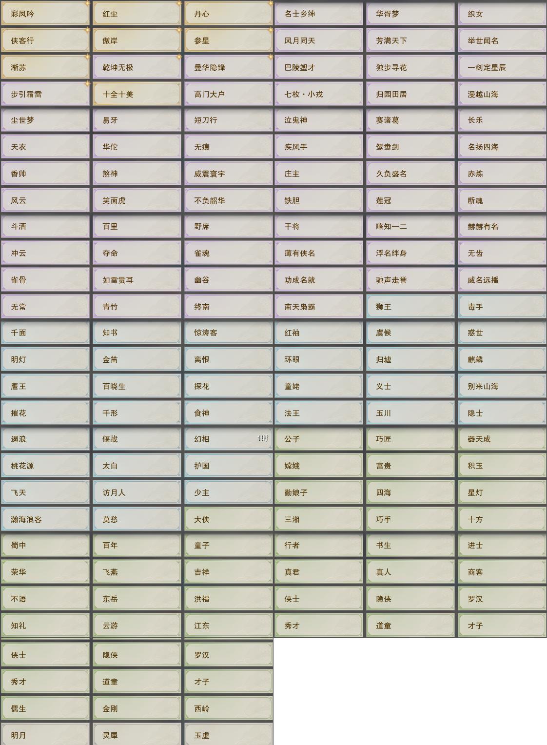 复刻:[望月欢心, 沧海间缥缈, 罗姆婵娟, 锦衣行谒游, 彩云归落雪, 彩云归素青, 复刻白二娃, 粉阳春, 黄二公主, 夜斩白孤云, 夜斩白暮长, 彩云归若霞, 尽奏故岸]