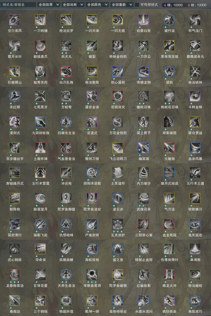 【奇珍】28个[枫林酒, 至尊宝, 石敢当, 青草歌, 兽王佩, 破晓鸣, 竹马情, 儿女事, 北行镖, 白雪忆]