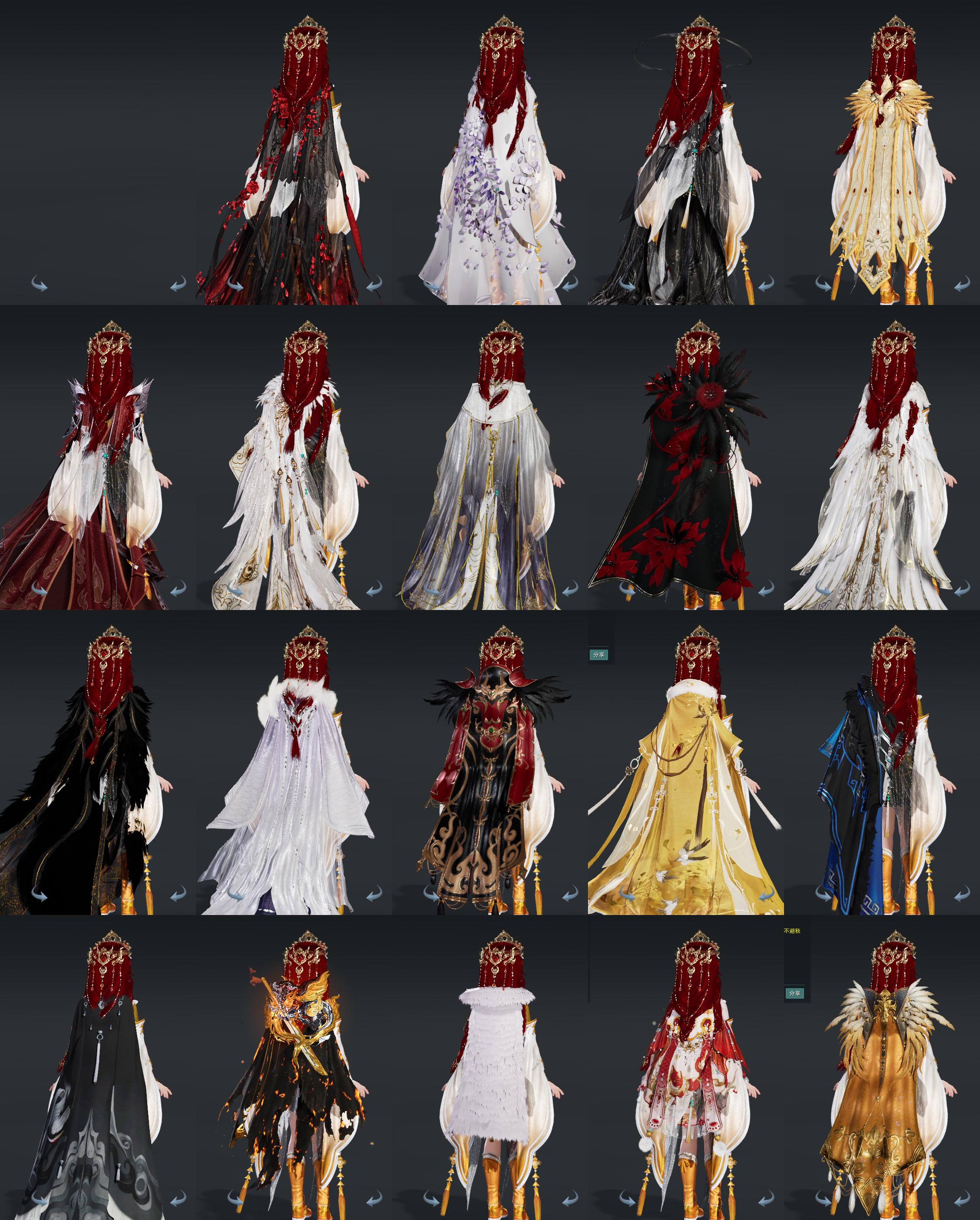 【披风】24个,[刀宗预热披风, 一代战令披风, 7W资历披风, 一代浩气, 情R枕, 14W资历披风, 一代黄, 青盒子披风, 三山披风, 奇遇披风, 叽盒子披风, 刀盒子披风, 星演披风, 虎盒披风, 咩盒披风, 白赵云披风, 业火劫, 黑狐裘, 团绒戏, 赤庭葳蕤]