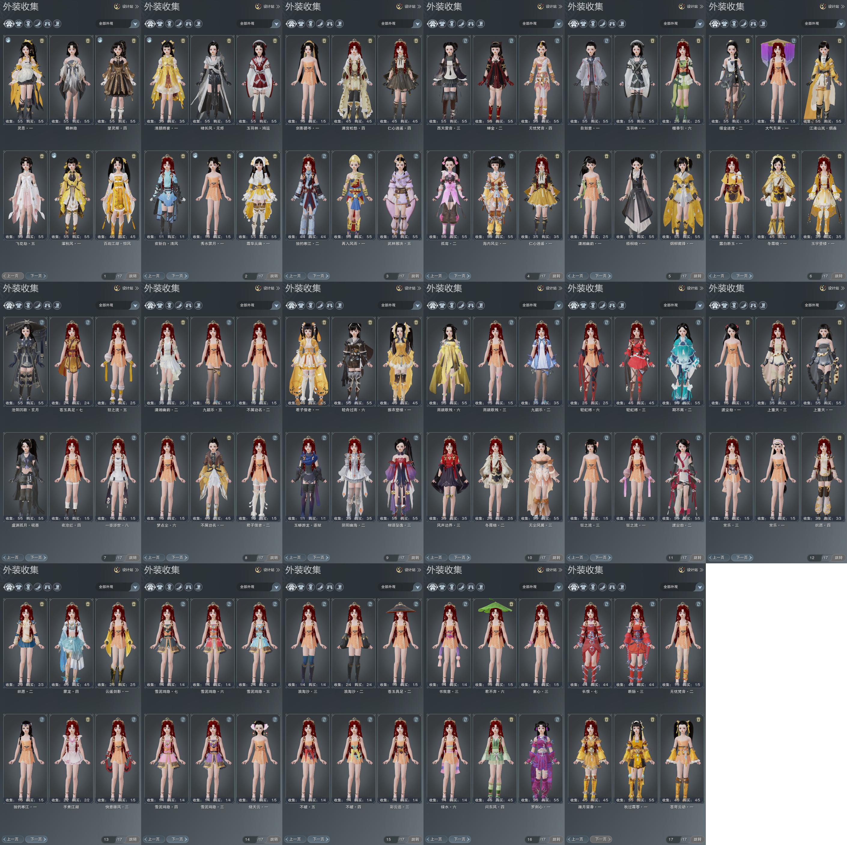 限时限量:[白九壤, 雪衣寒江, 霆螭月华, 十三万资历衣, 十六万资历衣, 中宵渊霜, 烟花套, 黑枕戈, 锦绣明辉, 客行逍遥夜影, 客行逍遥撷英, 客行逍遥天旷, 小黑龙衣, 盈露川陵, 一期福袋成衣, 幽涧愀兮, 十三周年成衣, 蓝水母]