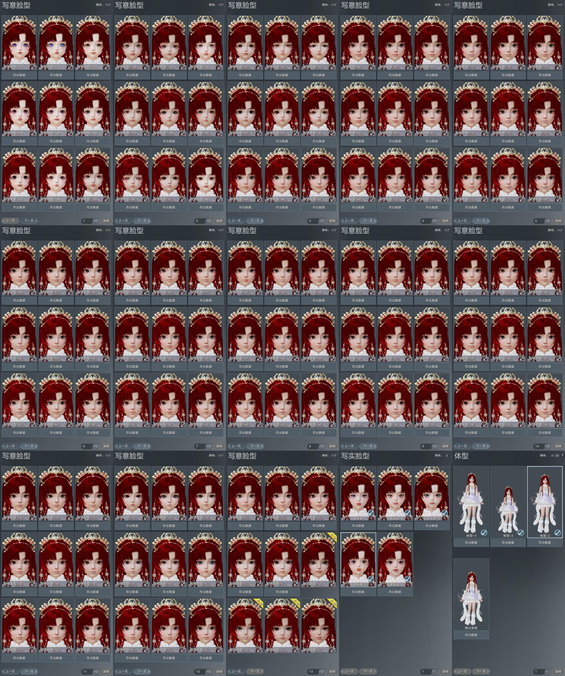 【捏脸】写意脸型117个,写实脸型5个,体型4个