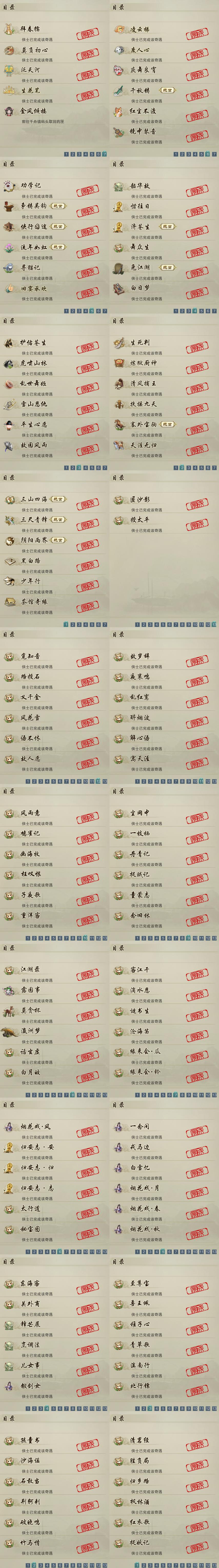 【奇珍】74个[枫林酒, 红衣歌, 归乡路, 胜负局, 孩童书, 清茗经, 捉妖记, 至尊宝, 石敢当, 稚子心]